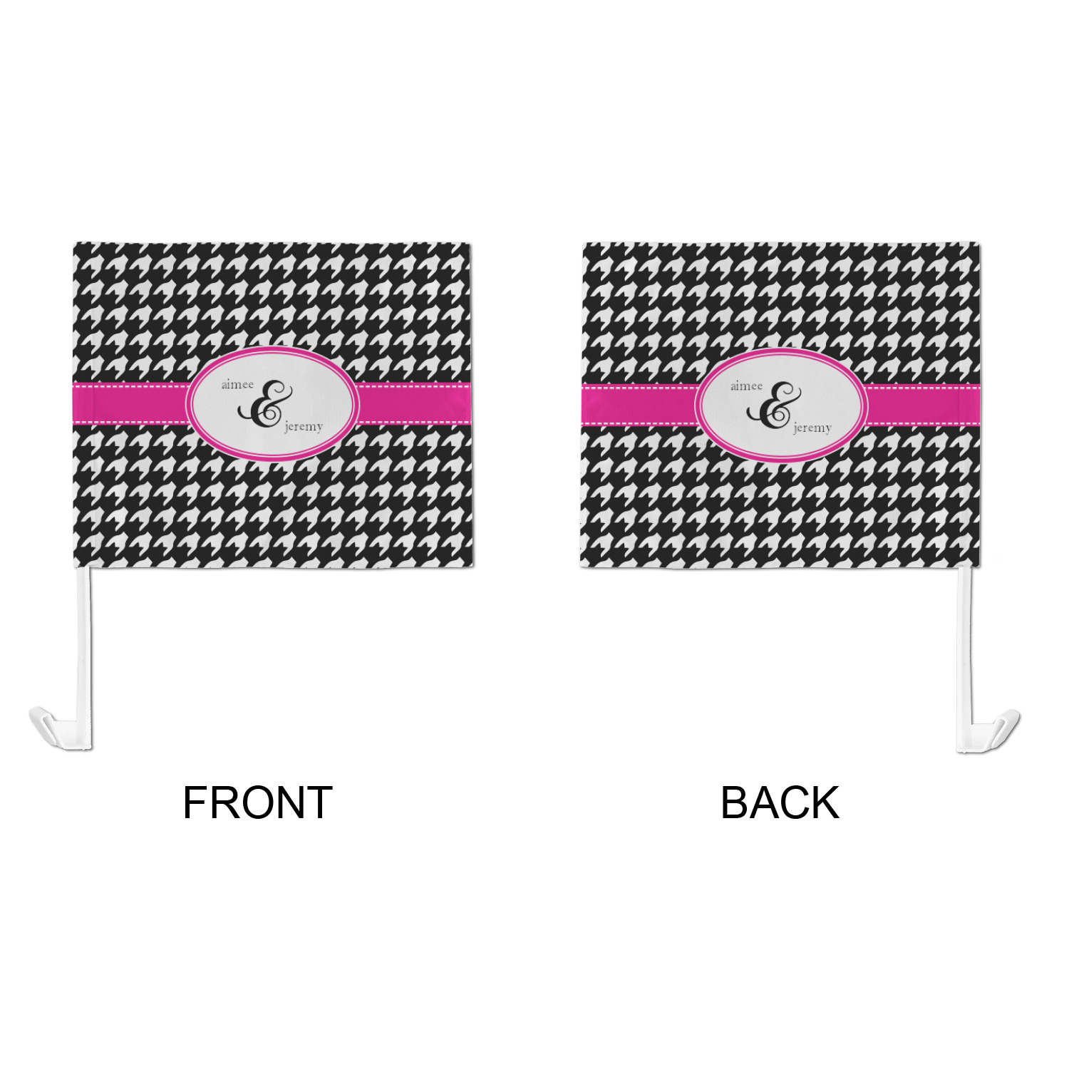 Our personalized flags are made from a durable, yet lightweight cloth that will proudly bear your logo or design of choice, while withstanding the outside elements. We have two size options - 8" x 11" and 11" x 15". Both come with a flag pole which includes a clip that secures the pole to the side window, whether it is rolled up or down. The flags are printed on both sides to display your design from all directions.