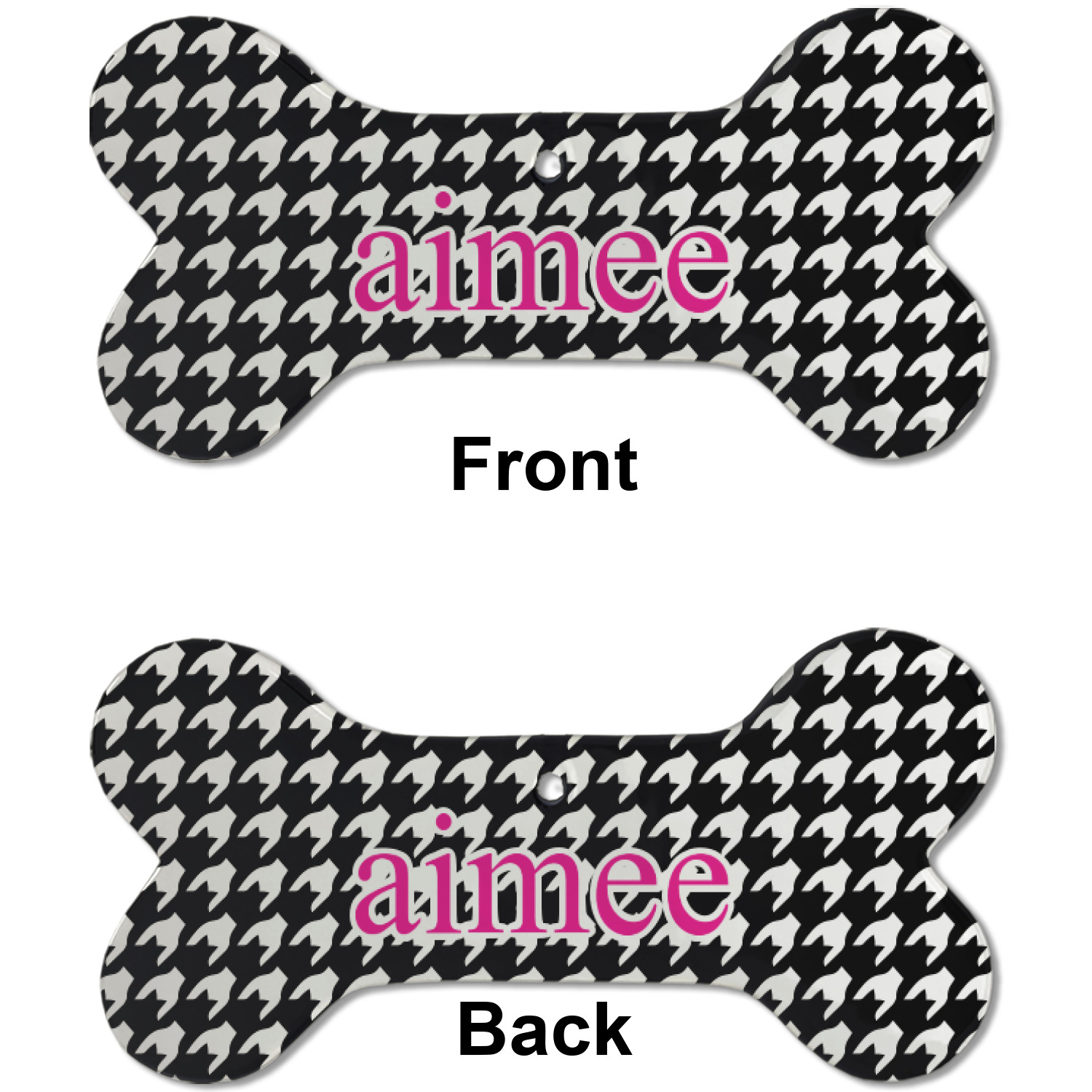 Our dog Christmas ornaments are a ceramic material with a bone-shaped structure hung horizontally. We offer two printing styles to personalize your furry friend's ornament! Choose a one-sided printing, perfect for wall decor, memorial accessory, or doghouse nameplate! Create a double-sided ornament perfect for adorning the Christmas tree. Each dog bone ornament is approximately 4.75" x 2.25" and is printed here in the USA.