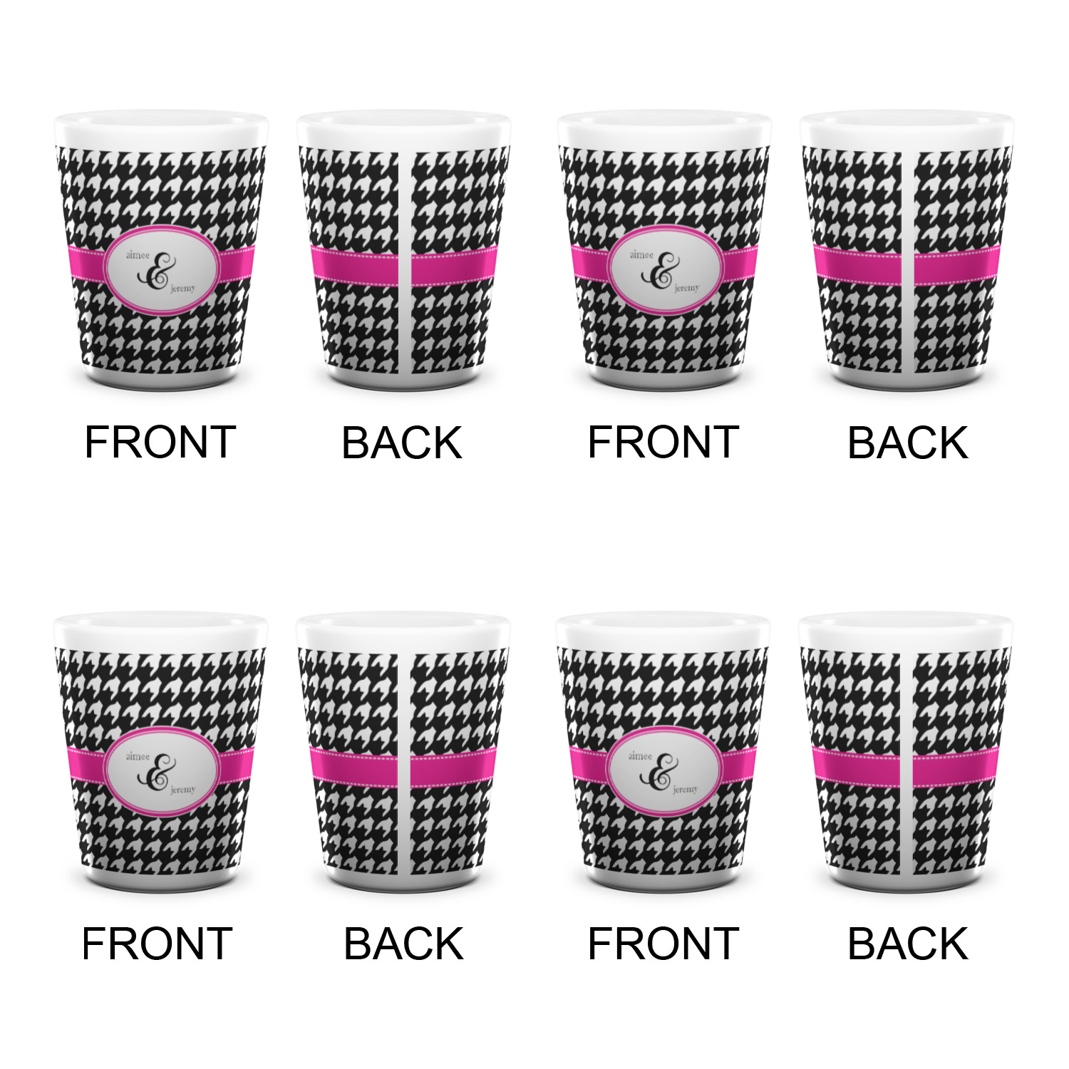 Made from ceramic these shot glasses are printed in full color with the design of your choice. These are a standard 1.5oz size and stand 2.25" tall. Available in a full white ceramic or a two-tone with a black color inside the shot glass. Buy a single or a set of 4, all of which can be designed separately to get you just what you want and need.