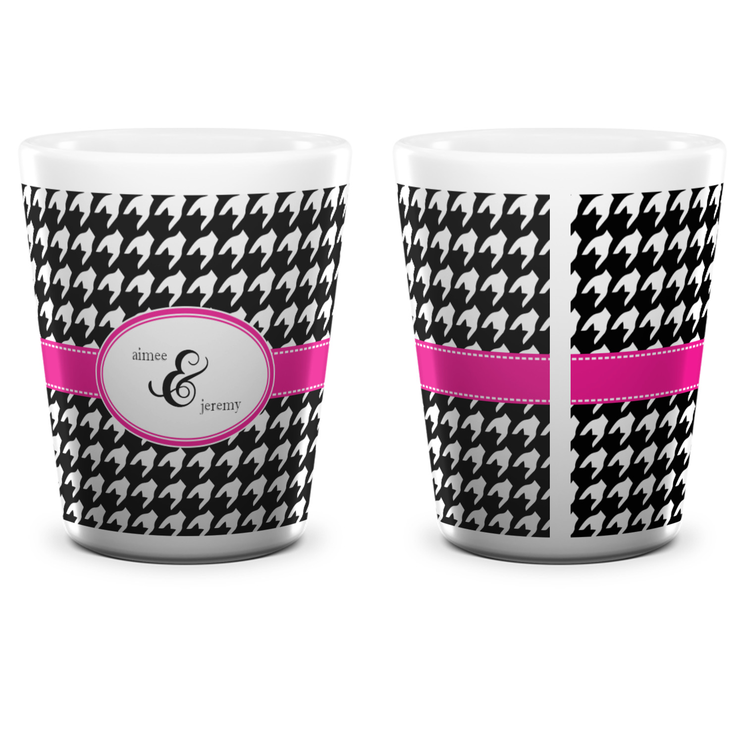 Made from ceramic these shot glasses are printed in full color with the design of your choice. These are a standard 1.5oz size and stand 2.25" tall. Available in a full white ceramic or a two-tone with a black color inside the shot glass. Buy a single or a set of 4, all of which can be designed separately to get you just what you want and need.