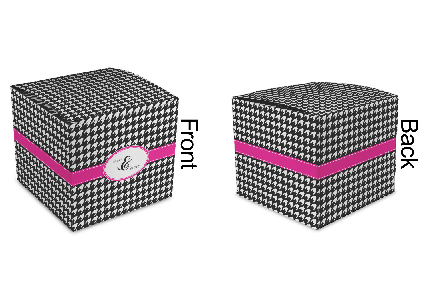 These cubic favor boxes are printed in full color on premium heavyweight cardstock that has a smooth semi-gloss finish.