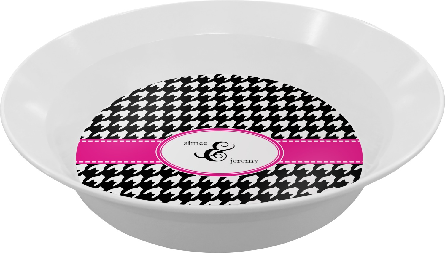 This classic black and white houndstooth pattern jumps to life by adding a modern touch of hot pink.