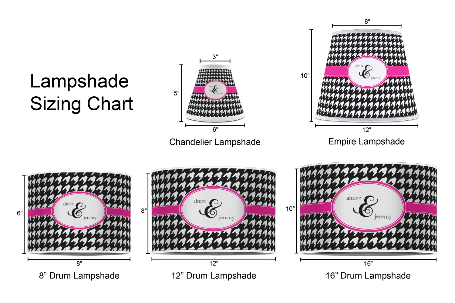 Our customized lamp shades also come in 3 different sizes: 8", 12" and 16", measuring at 8" in diameter by 6" tall, 12" in diameter by 8" tall, and 16" in diameter by 10" tall, respectively.