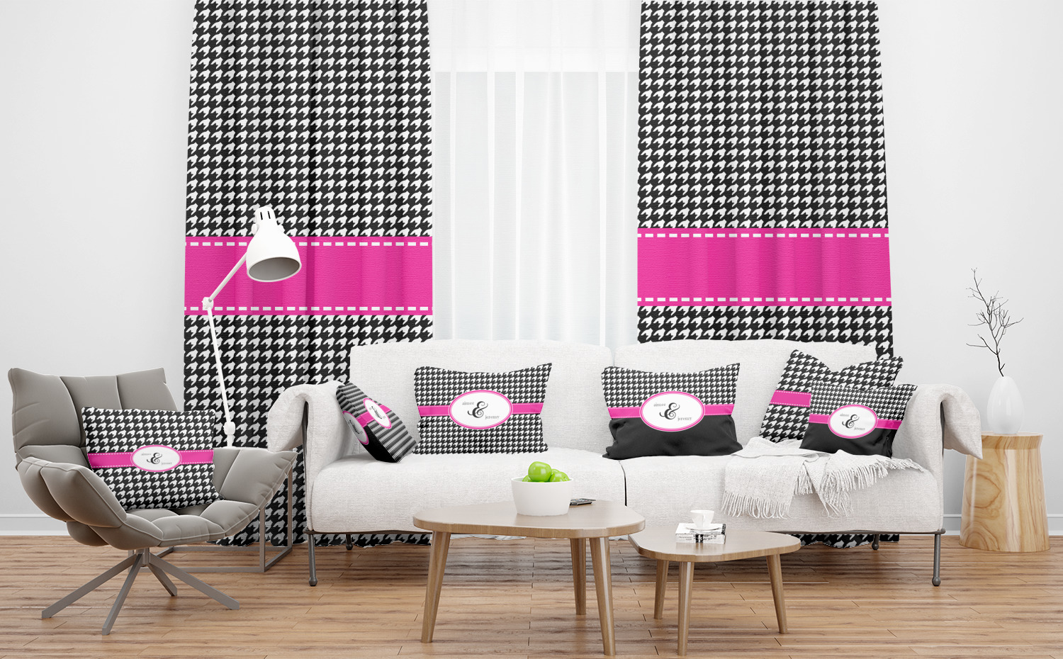 This classic black and white houndstooth pattern jumps to life by adding a modern touch of hot pink.