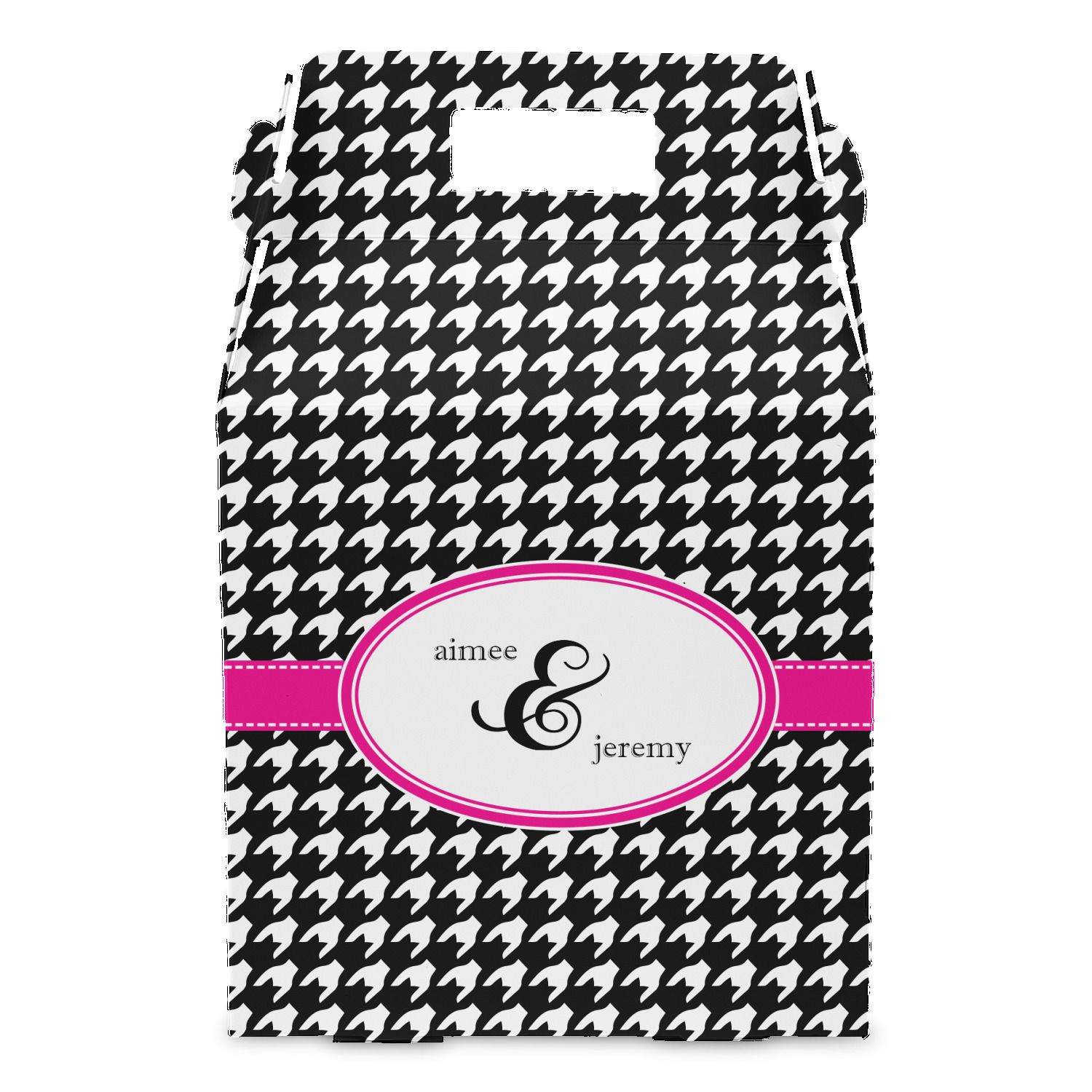 This classic black and white houndstooth pattern jumps to life by adding a modern touch of hot pink.