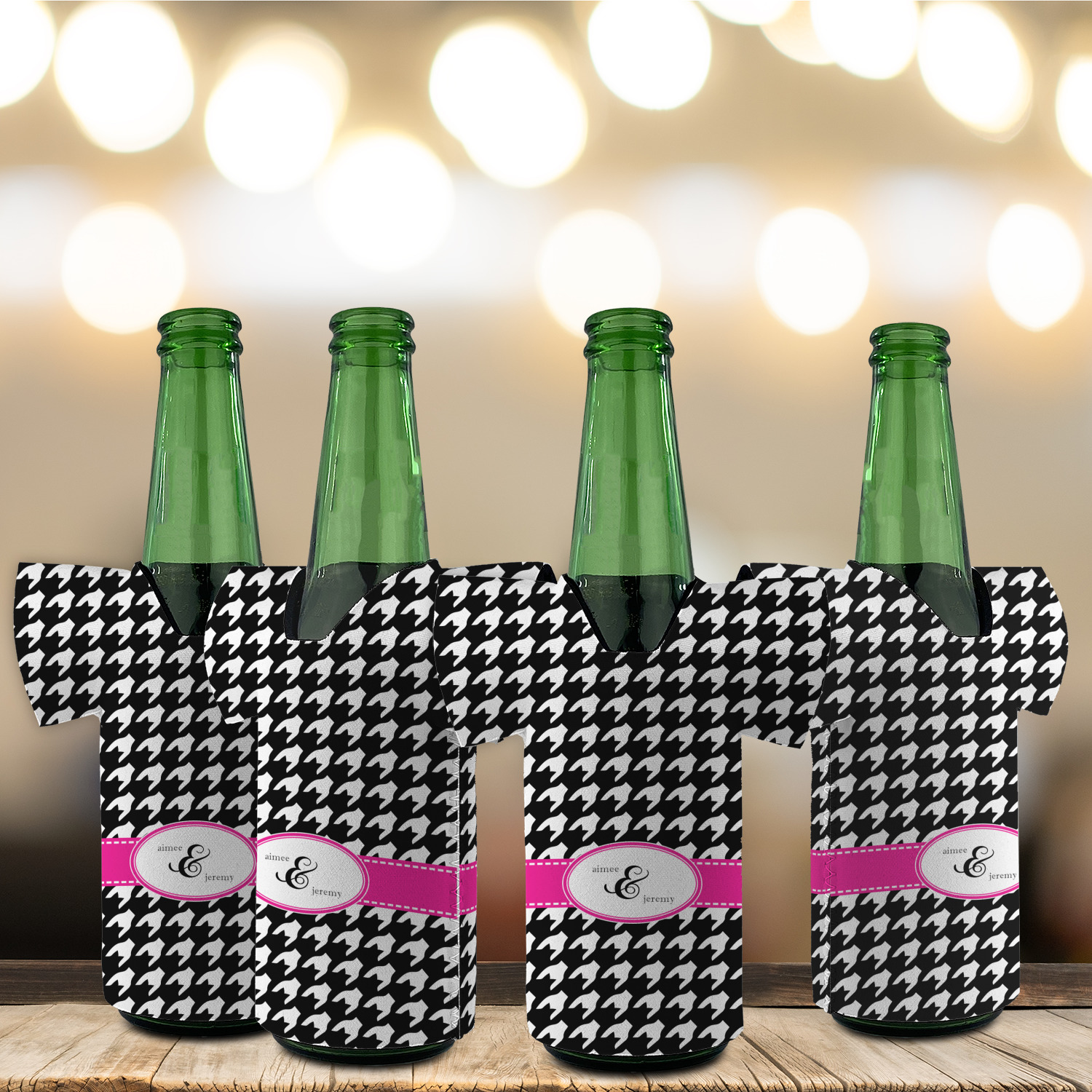 This classic black and white houndstooth pattern jumps to life by adding a modern touch of hot pink.
