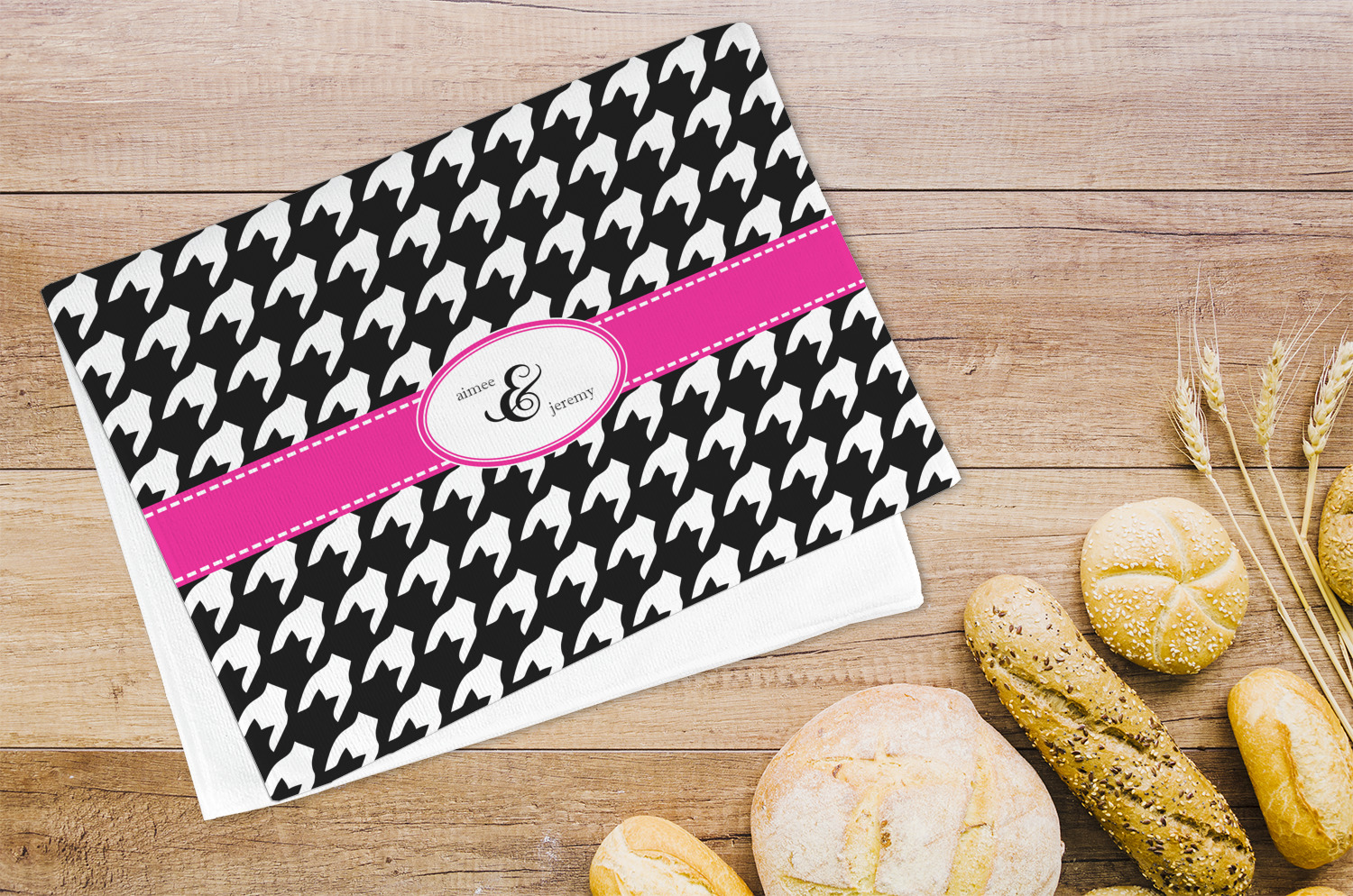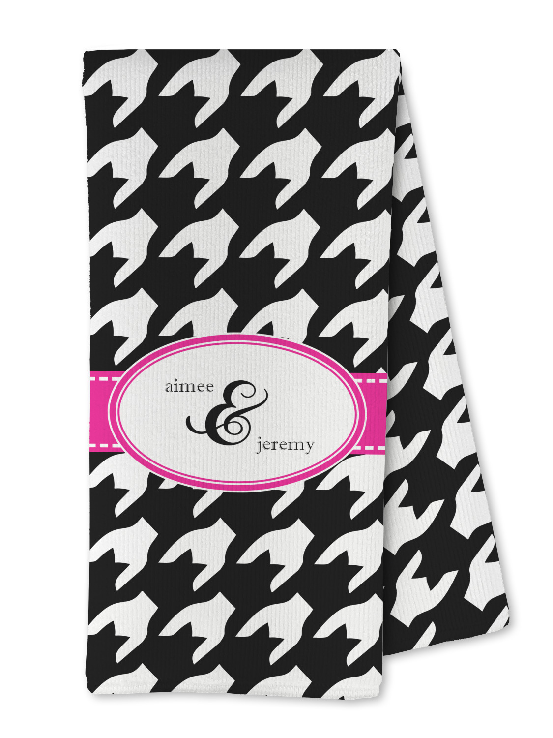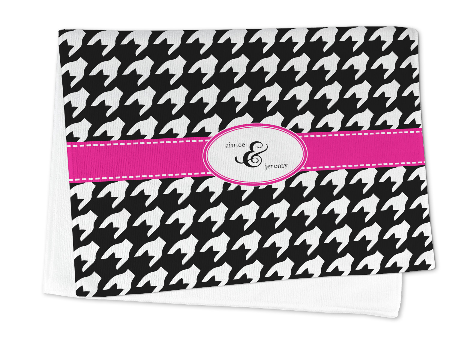 This classic black and white houndstooth pattern jumps to life by adding a modern touch of hot pink.