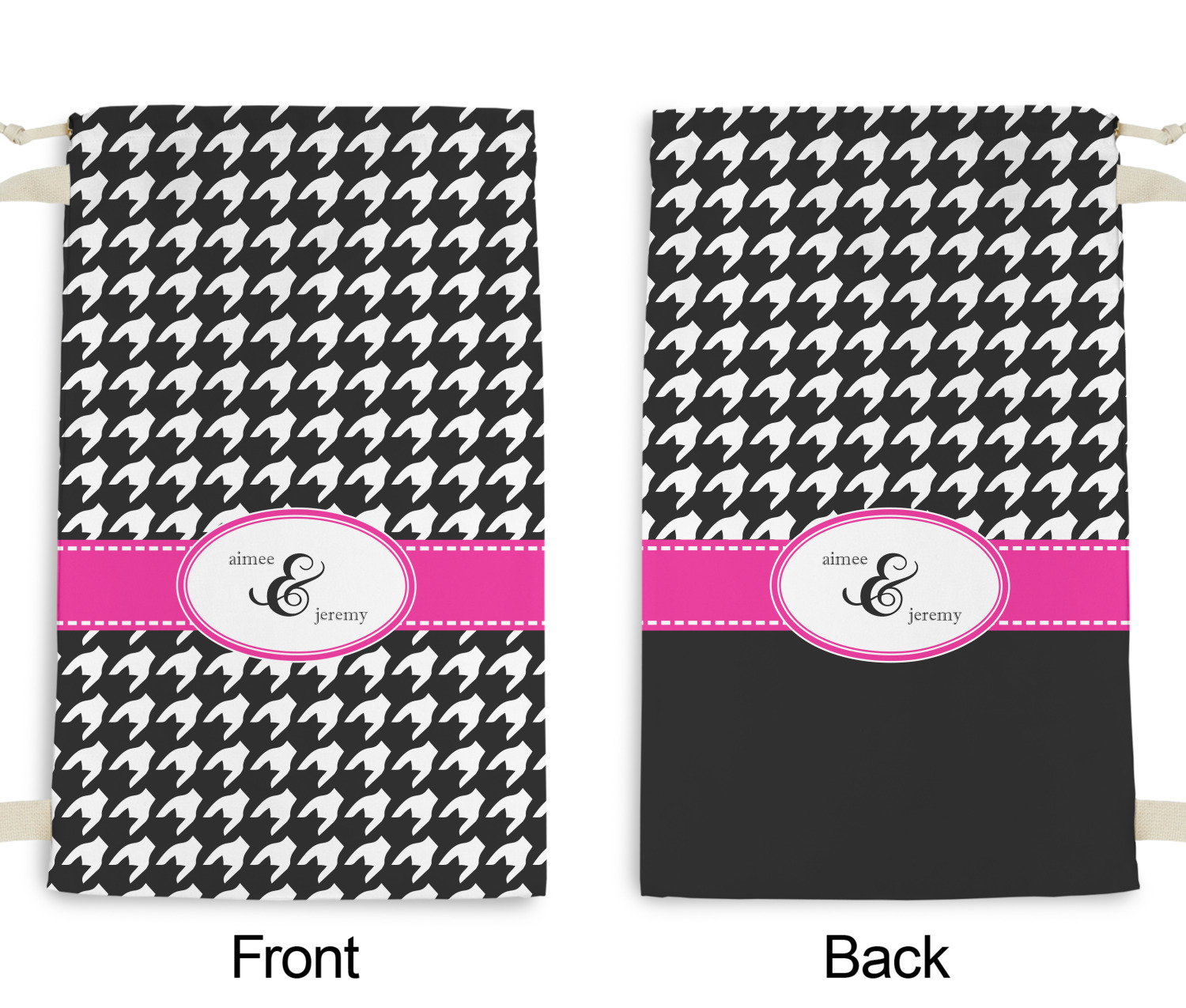 This classic black and white houndstooth pattern jumps to life by adding a modern touch of hot pink.