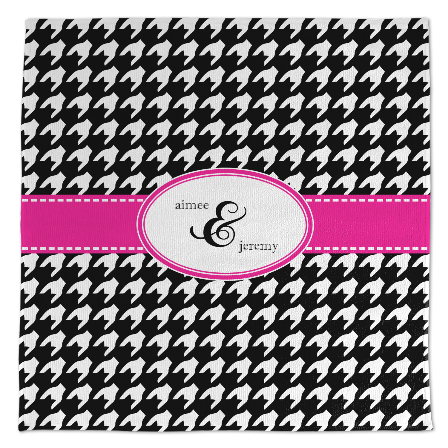 This classic black and white houndstooth pattern jumps to life by adding a modern touch of hot pink.