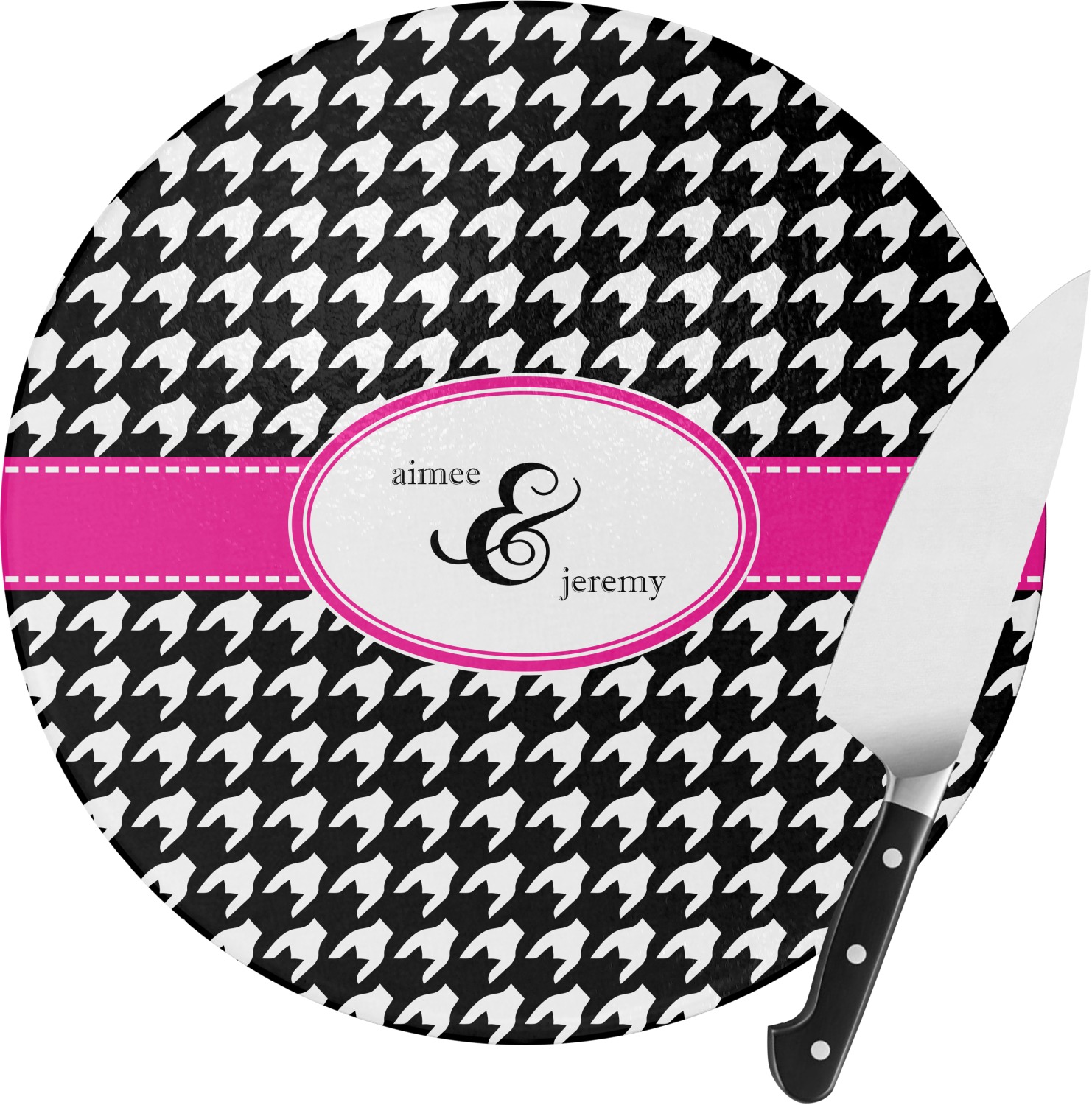 | SKU | mi-round-cutting-board-S+Houndstooth-w-Pink-Accent |