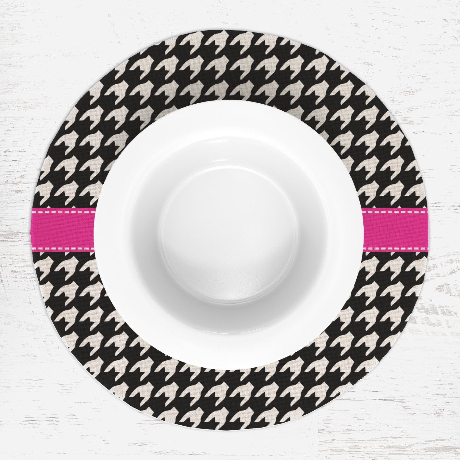 This classic black and white houndstooth pattern jumps to life by adding a modern touch of hot pink.