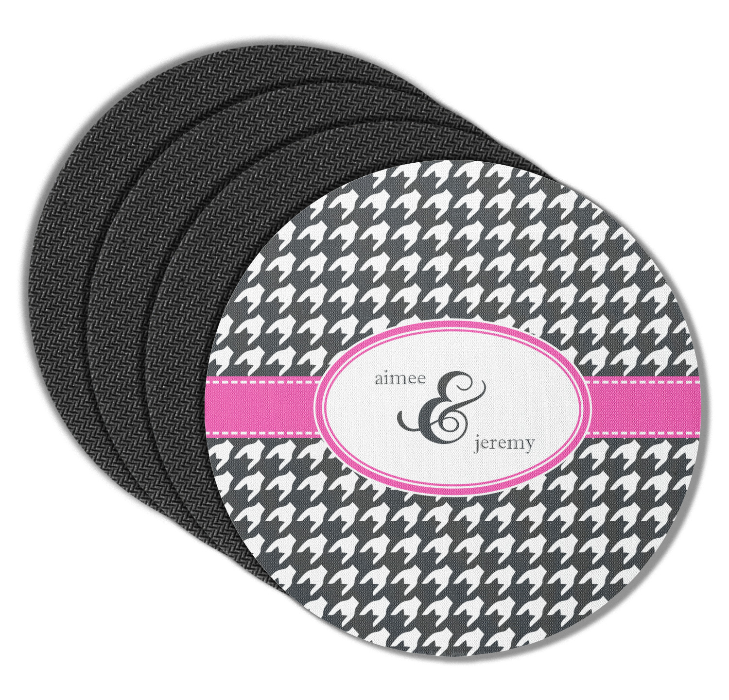 These drink coasters have a smooth, polyester top and a textured, rubber backing on its bottom. The non-slip rubber backing underneath works to keep any spills at bay. At 4 by 4 by 0.25 inches thick, these custom coasters are a suitable size for most drinkware. Your personalization is displayed atop the face of the cup coaster. We sell these rubber coasters in two different shapes: square and round. You can buy each shape as singulars or as a set of 4.