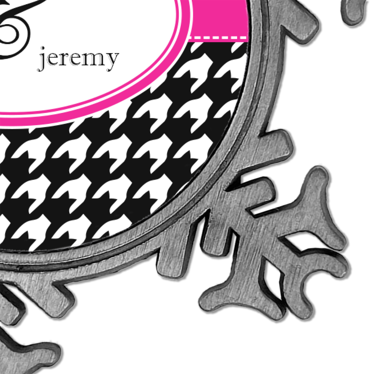 This classic black and white houndstooth pattern jumps to life by adding a modern touch of hot pink.