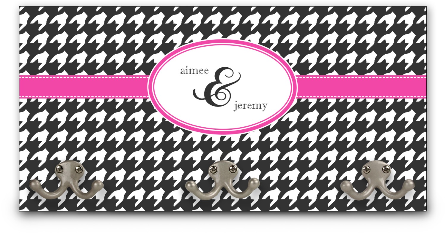 This coat rack is the perfect way to add some personality to your wall or entryway. The board is made of a strong maple that is approximately 16" x 8". The three 2-prong hooks are a sturdy metal that have three screws attaching them to the board. Your design is printed right onto the front of the board while the back and sides are a simple black.