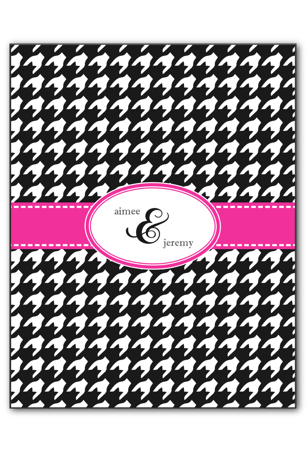 This classic black and white houndstooth pattern jumps to life by adding a modern touch of hot pink.