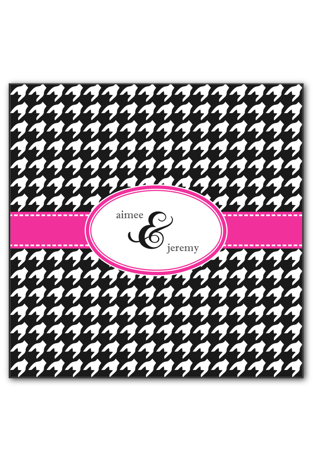 This classic black and white houndstooth pattern jumps to life by adding a modern touch of hot pink.