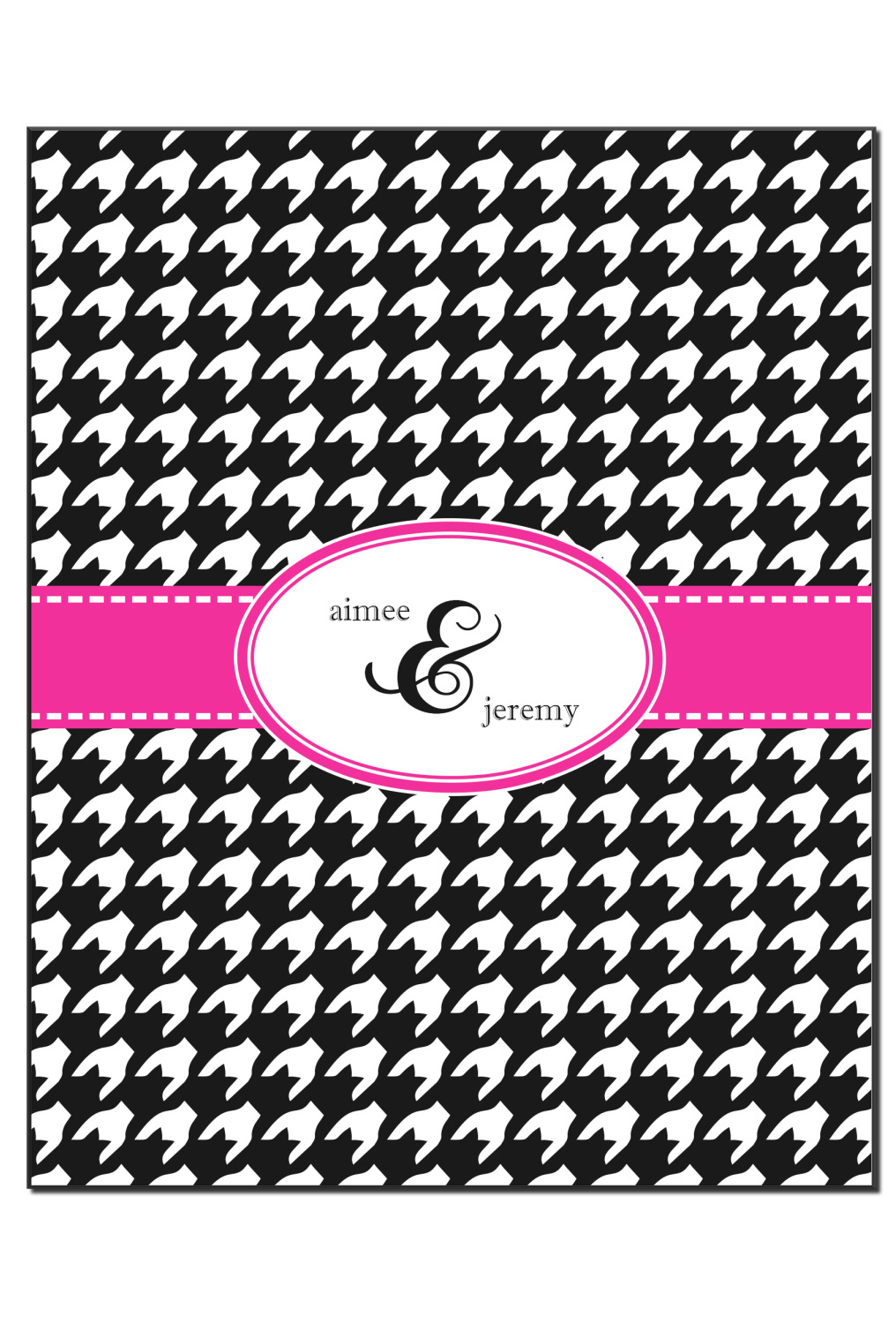 This classic black and white houndstooth pattern jumps to life by adding a modern touch of hot pink.