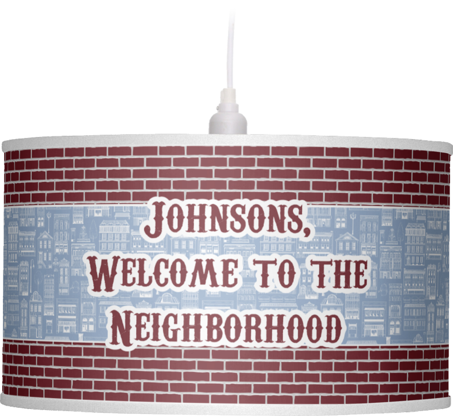These pendant lampshades are in a cylindrical, drum shape. Available in 2 sizes - 16 inch diameter and a height of 10 inches or 12 inch diameter with a height of 8 inches, this lantern pendant light will not go unnoticed in your home. The interior of this light shade is made of flexible, smooth plastic, and the base color of the lamp is white. Your personalization is displayed on the exterior of this custom lampshade. The fabric shades the fabric fully wraps the ring for a sleek look. Your purchase includes a 12 foot long cord that has a convenient on and off switch attached, the cord is black in color with a tasteful cloth covering over the cord to add the sophisticated look to this light fixture. This lamp can fit a 60 or 75 watt light bulb, but the bulb is not included. Please scroll through the images above to learn more about the structure and shaping of this lamp compared to the other ones we offer.