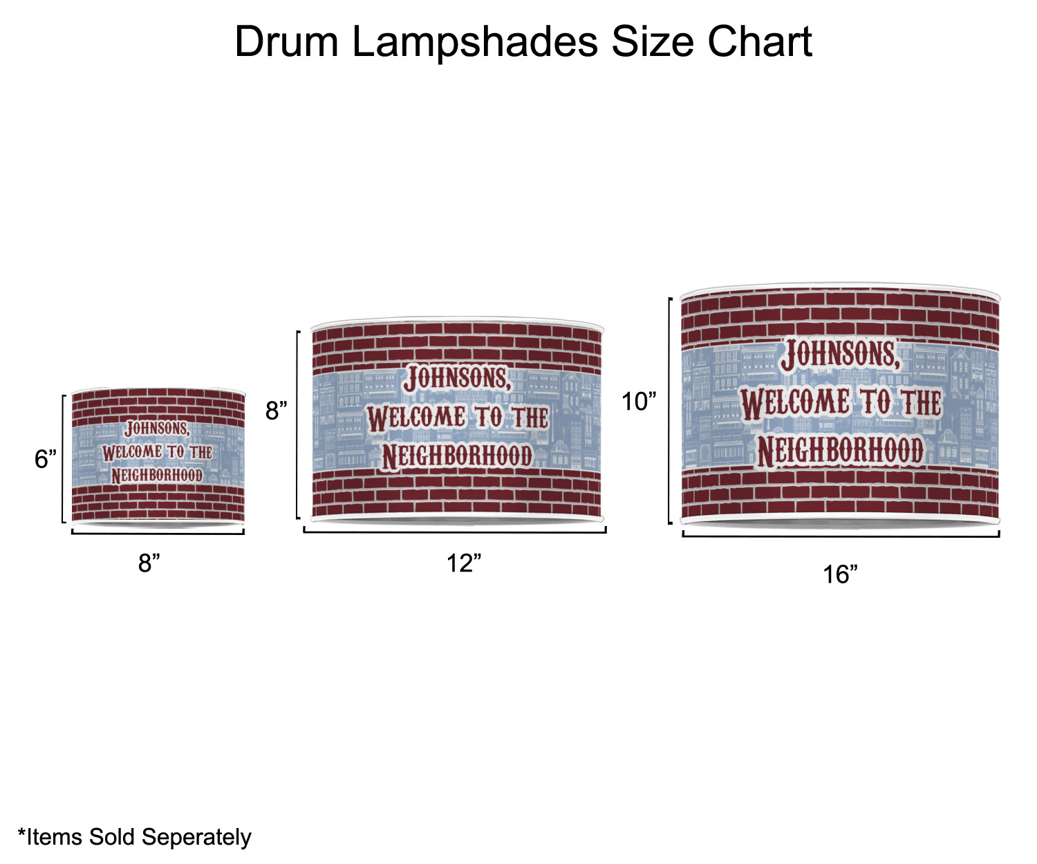 Our customized lamp shades also come in 3 different sizes: 8", 12" and 16", measuring at 8" in diameter by 6" tall, 12" in diameter by 8" tall, and 16" in diameter by 10" tall, respectively.