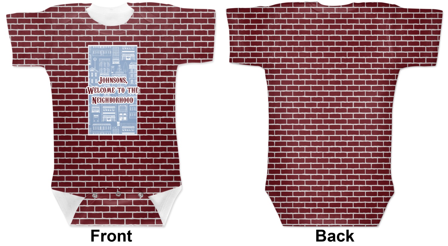 These cute baby bodysuits are made of stretchy, soft-to-the-touch polyester, making them very comfortable for your baby. These baby bodysuits also have snaps on the bottom to give easy access during changing times. Your personalization covers the entirety of this custom baby bodysuit, but the interior is white in color. As these are unisex baby bodysuits, they will work perfectly as baby girl bodysuits and baby boy bodysuits!