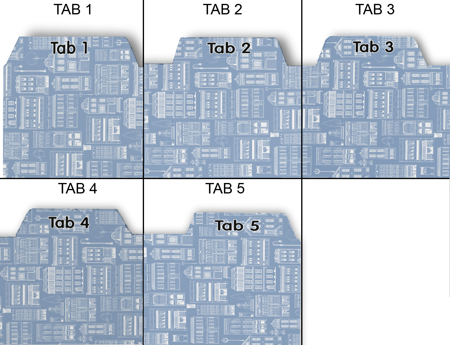 Whether you use binders at school or at work, we have designs to suit all of them. Available in 5 or 6 tab sets, you are sure to find a set to suit your needs. The back of each one is white and can be used to take notes, write vital information on, etc.