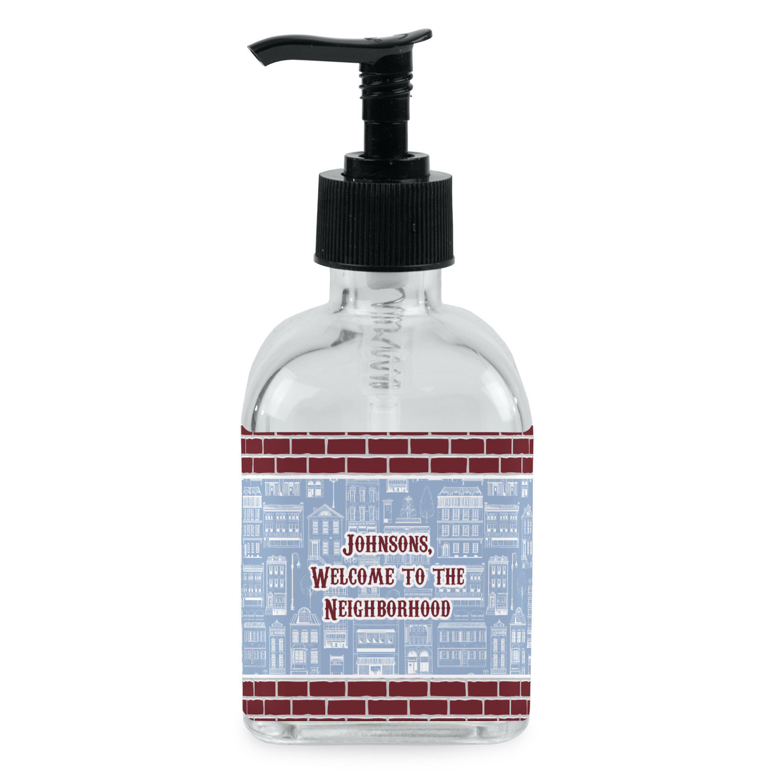 Crafted from a high-quality glass, these soap dispensers and lotion dispensers are durable and robust, while still looking elegant. They are sold with black pumps. Each soap dispenser pump measures at 6.5 by 2.25 inches. On these soap pumps, we display your customized design on a personalized vinyl adhesive on three sides. That way, you can judge how much liquid is in the bottles from the back.