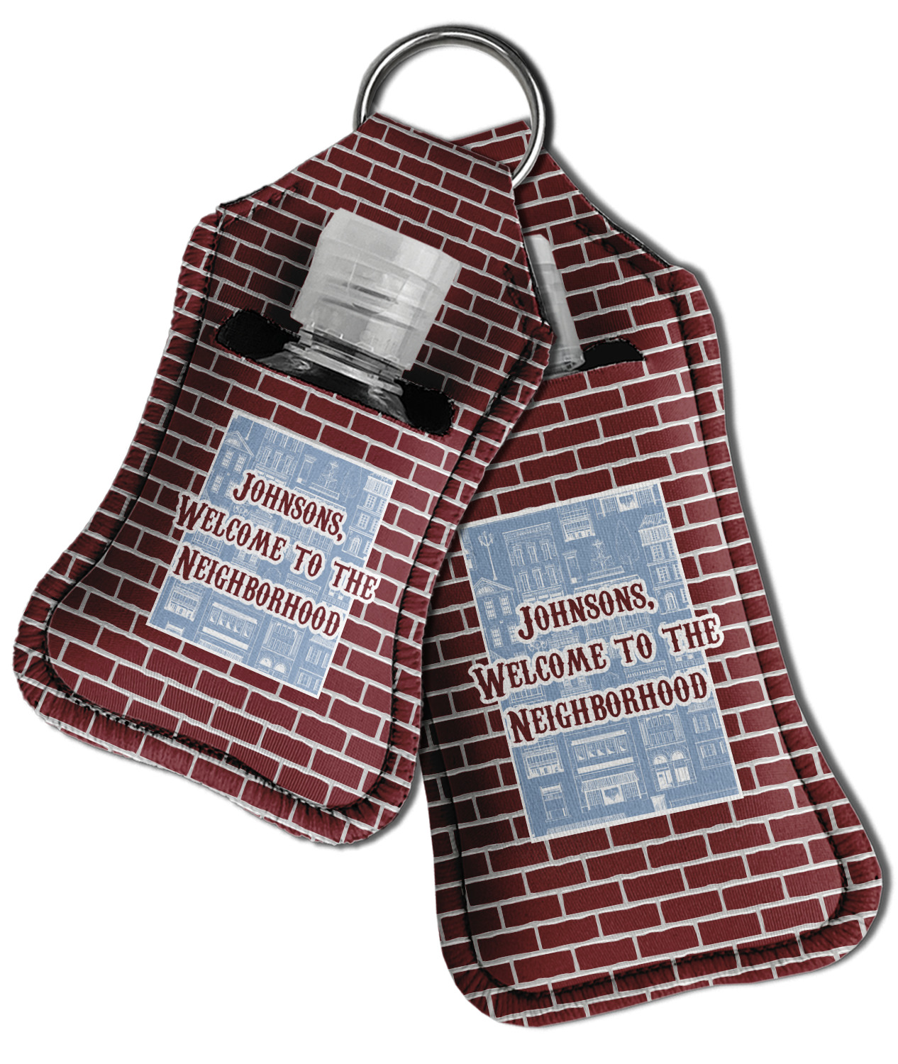 Each hand sanitizer holder comes with its own empty travel-sized, refillable hand sanitizer sure to fit snug in your customized sanitizer case! Our hand sanitizer cases are a durable, yet soft neoprene material sure to last any daily activities or travel agenda. Customize and personalize a hand sanitizer bottle holder with one of our two sizes - small (4.25" x 2.25") or large (5.5" x 2.5"). Each travel sanitizer holder comes with a keyring for attachment on bags, keys, or more!