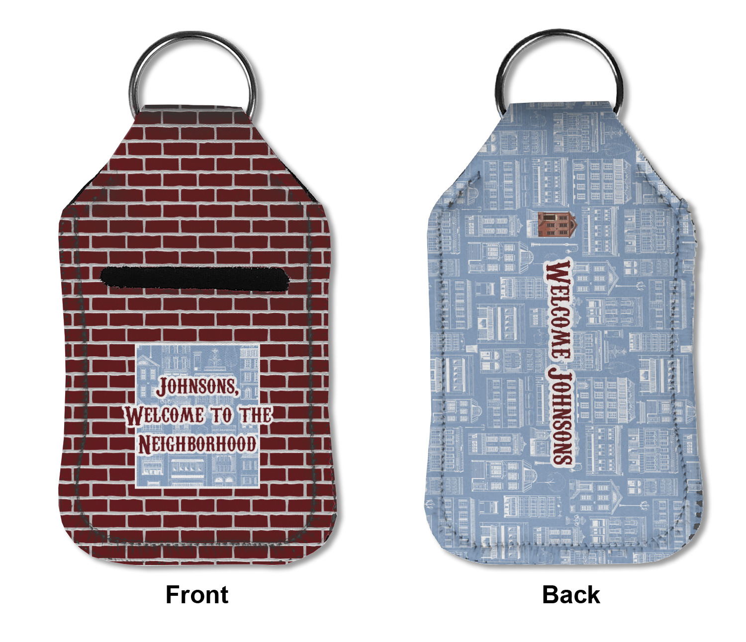 Each hand sanitizer holder comes with its own empty travel-sized, refillable hand sanitizer sure to fit snug in your customized sanitizer case! Our hand sanitizer cases are a durable, yet soft neoprene material sure to last any daily activities or travel agenda. Customize and personalize a hand sanitizer bottle holder with one of our two sizes - small (4.25" x 2.25") or large (5.5" x 2.5"). Each travel sanitizer holder comes with a keyring for attachment on bags, keys, or more!