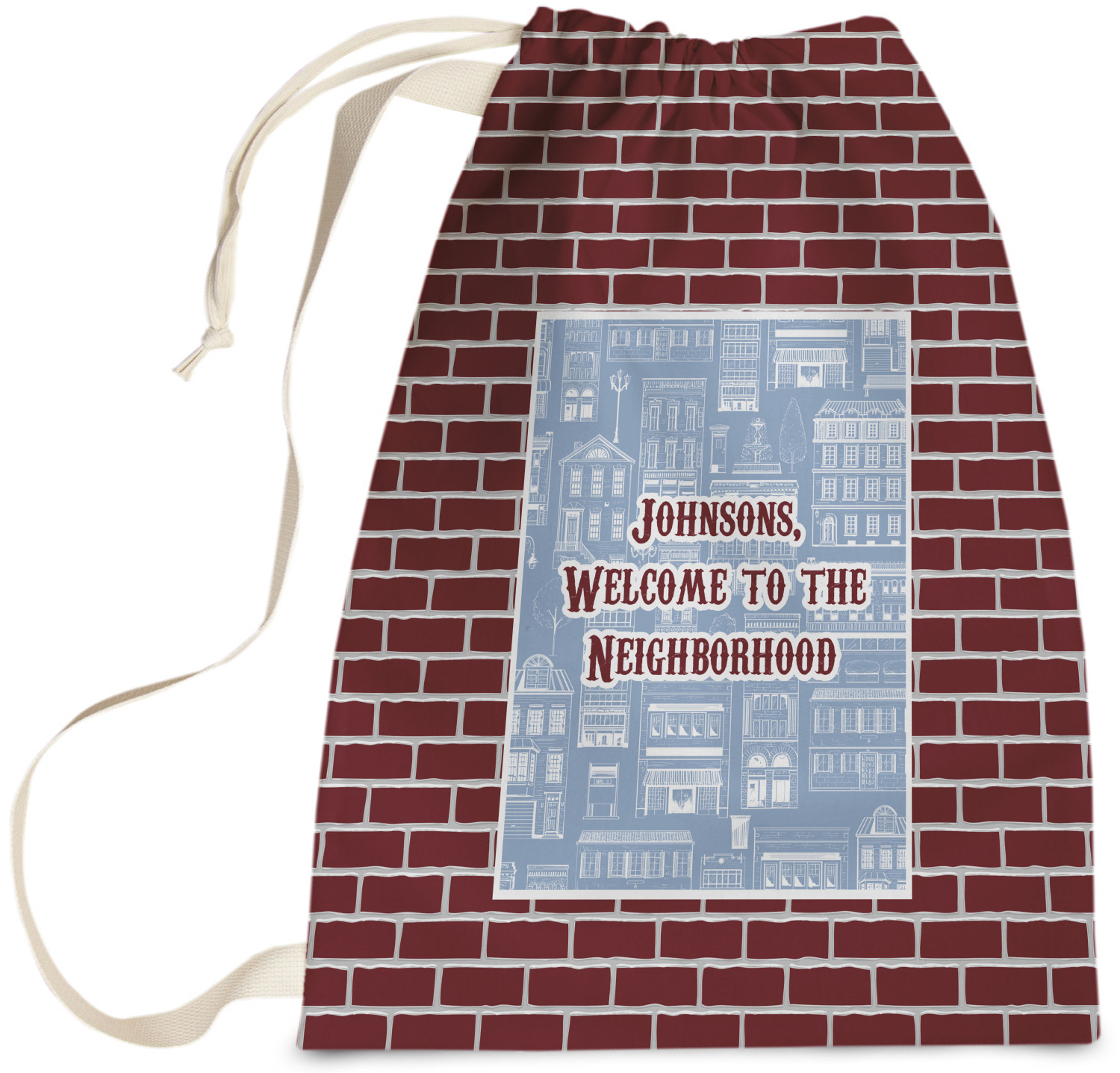 Carry your laundry in style with these customized laundry bags. Available in two sizes, featuring a natural colored woven strap and a cinch cord, these bags hold a lot of clothes or anything else you want to fit in them.