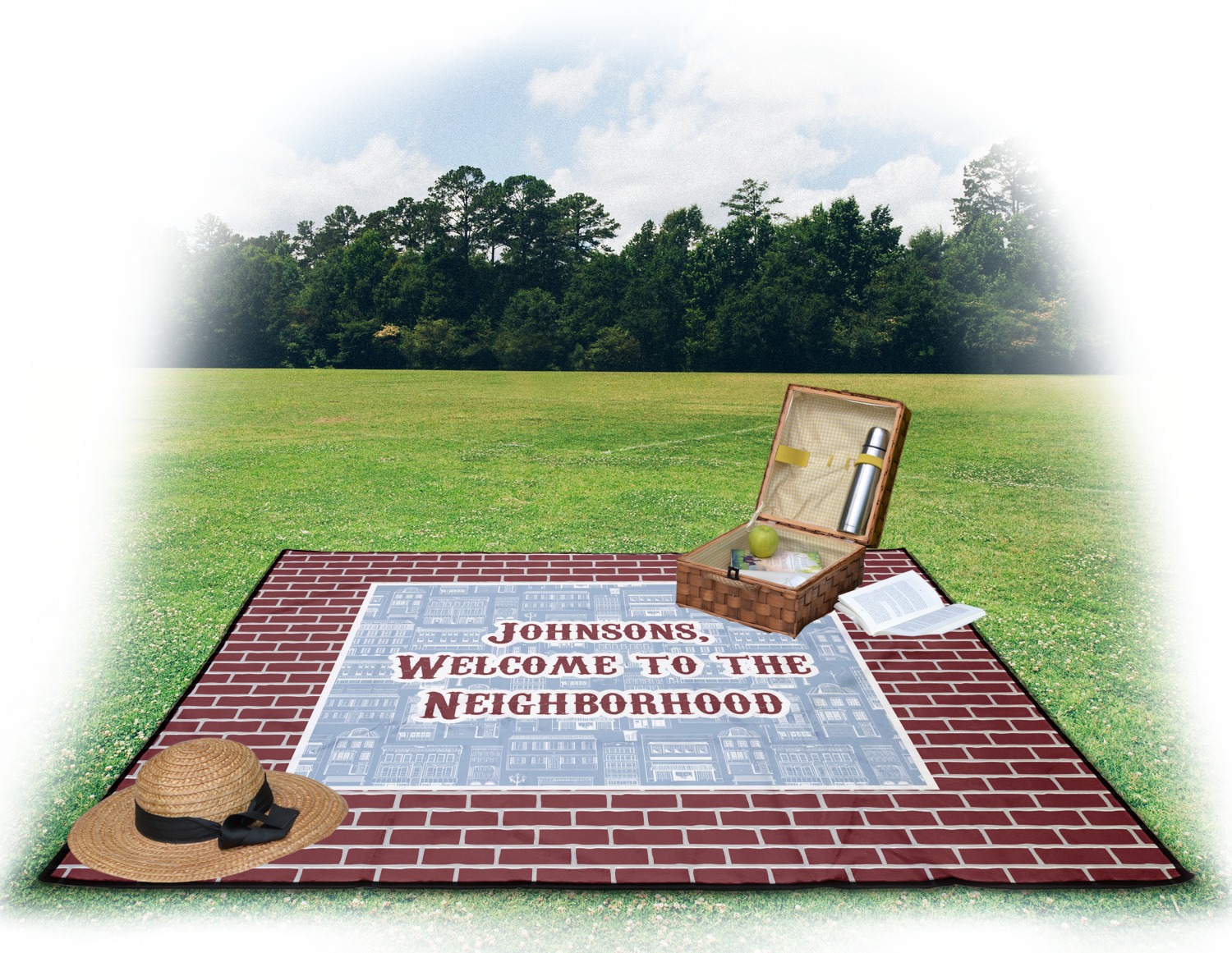 This picnic blanket is perfect for hanging out with your friends at the park or anywhere outside. The top of the blanket is made of a super soft microfiber fleece. The bottom of the blanket is made of a black material similar to a rain jacket and is water repellent as well. This will keep any wet spots on the ground from soaking through your picnic blanket. No one likes a wet blanket. The blanket measures at approximately 50" x 59" and has a nicely finished ribbon edge.