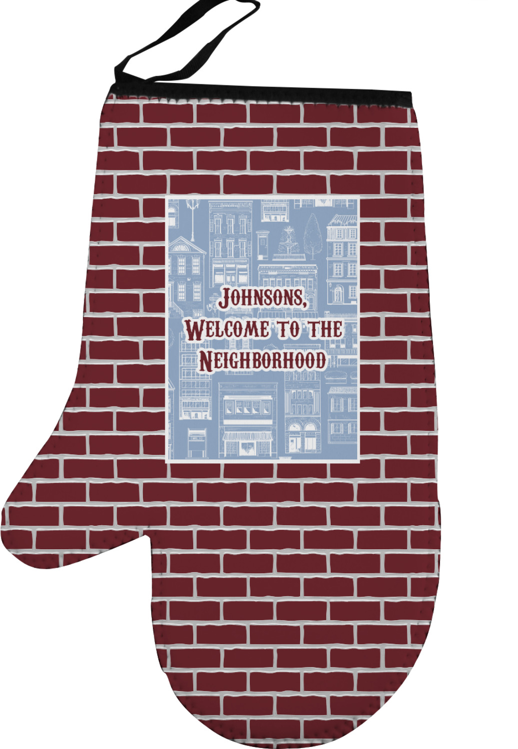Our oven mitt gloves are made from a durable neoprene and feature a textured, rubberized surface on the palm's side for an easy grip. A strong stitch connects the neoprene and rubber, increasing the durability of this mitt. These oven gloves are spacious, and can accommodate both small and large hands. A thin, black loop is attached to the mitt's top, which can be used to hang and store the mitt. Your customization is displayed across the entire front of the neoprene surface. We sell both left and right hand models of these, separately.