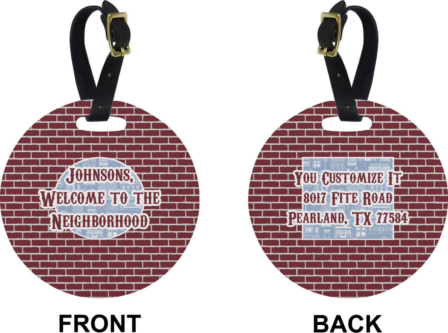 These cute luggage tags are made of a fiber-reinforced, UV-resistant plastic, making them waterproof and durable enough for both everyday use and the rugged adventures of any traveler! A leather strap with holes and a buckle is included with your purchase and can be used to attach your custom luggage tag to any suitcase, backpack, or duffel bag. You can design these travel tags as you wish; your customization will be displayed across the front, while the back will show as little or as much personal information as you want.