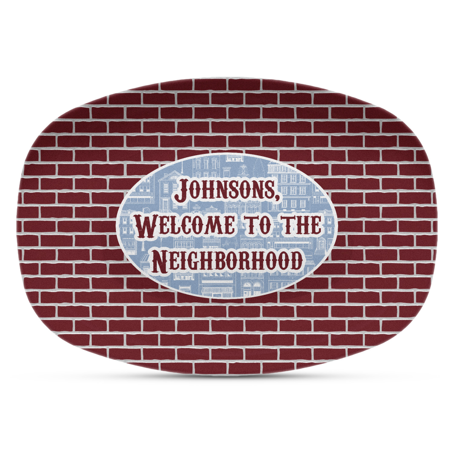 These serving platters are made from a composite, thermo-set, polymer plastic that gives it the versatility, durability, and weight of a melamine platter, without any of the downsides of melamine. These personalized platters, can withstand temperatures up to 250 degrees Fahrenheit, for up to 60 minutes. No harmful chemicals, such as BPA, formaldehyde, and DEHPs were used in the manufacturing of this product. This large serving platter measures at 14" x 10.25", and is spacious enough to hold any of your appetizers or bite-sized desserts. The platter exhibits your personalization across the entirety of its front.