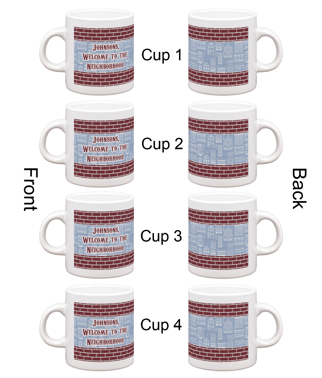 Each of our espresso mugs is a ceramic material sure to keep your drink warm. Personalize one cup for yourself, or order a set of 4! Its the perfect little gift for any coffee lover! We carry two sizes for you to personalize - 3 oz. (approx. 3.25" x 2.325" x 2.625") or 6 oz. (approx. 4" x 2.9" x 2.9"). Our 3 oz. mug is perfect for that single shot espresso while our 6 oz. mug can be your next favorite cappuccino cup holding two shots of espresso!