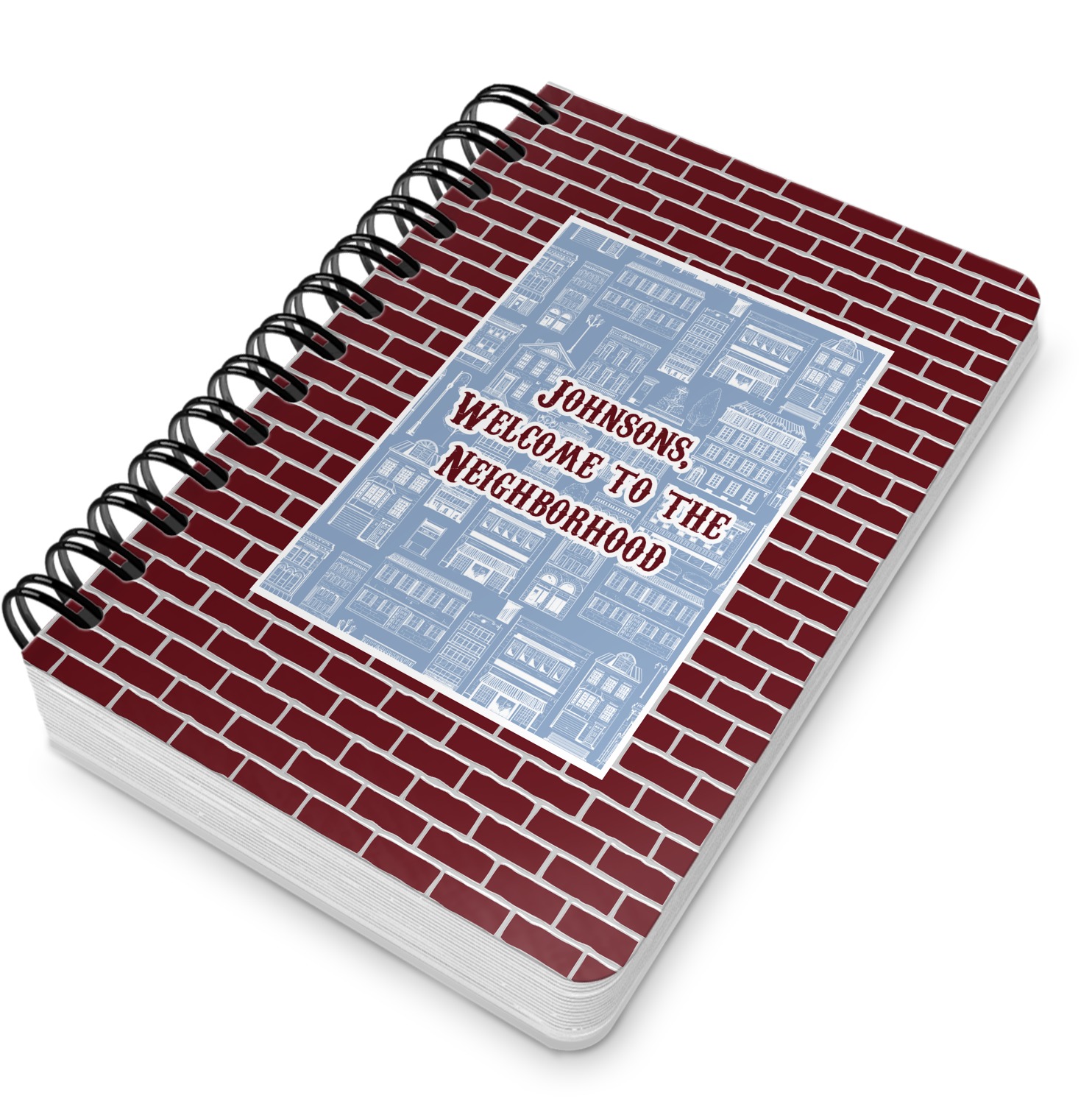 This spiral notebook includes 75 sheets of thick, ruled paper. The front and back of this custom notebook is made of a robust, laminate, plastic covering. We print your personalization on these two panels, underneath a glossy finish, which emphasizes the colors of your design. The two panels and the sheets of paper are held together by a sturdy, black coil. The paper within your bound notebook is perforated for easy, clean tearing.