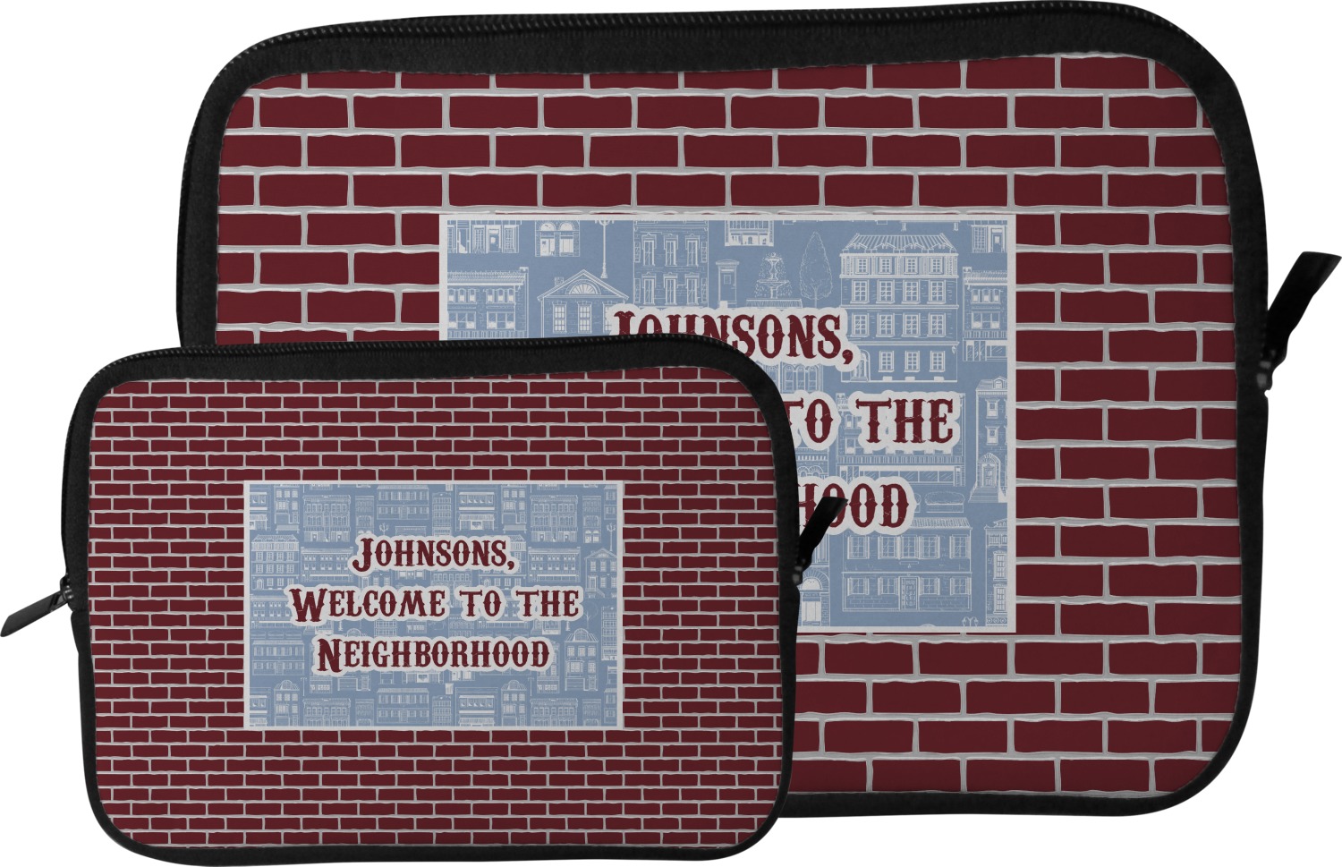 These tablet covers are fabricated from a water-resistant neoprene, and feature a zipper at its top for easy access to your device. The supple, cushioned nature of the neoprene will protect your tablet from the mishaps of daily life. Your personalized design is printed on the front of the I-Pad case, while the remaining sides are black in color. We provide this case in two sizes, in order to best accommodate your device. Our smaller size can fit a tablet with an 11 inch screen, while our larger sleeve is better suited for devices with approximately a 13 inch screen.