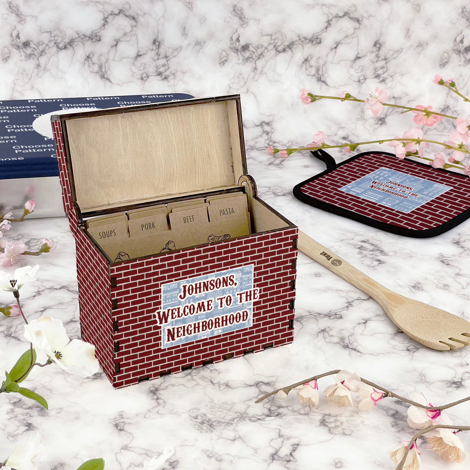 Using our design library you can design your recipe box to be personalized just for you. We will then laser engrave it and assemble it and have it ready for you to insert your recipe cards when you recieve it.