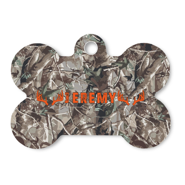 The large bone shaped dog tag measures 2" wide X 1 " tall.