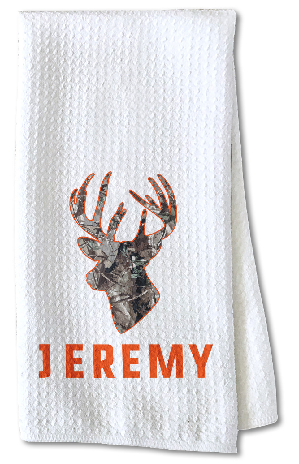 Each waffle weave kitchen towel is approximately 16 x 24 inches with your design printed on one side and the back is white.