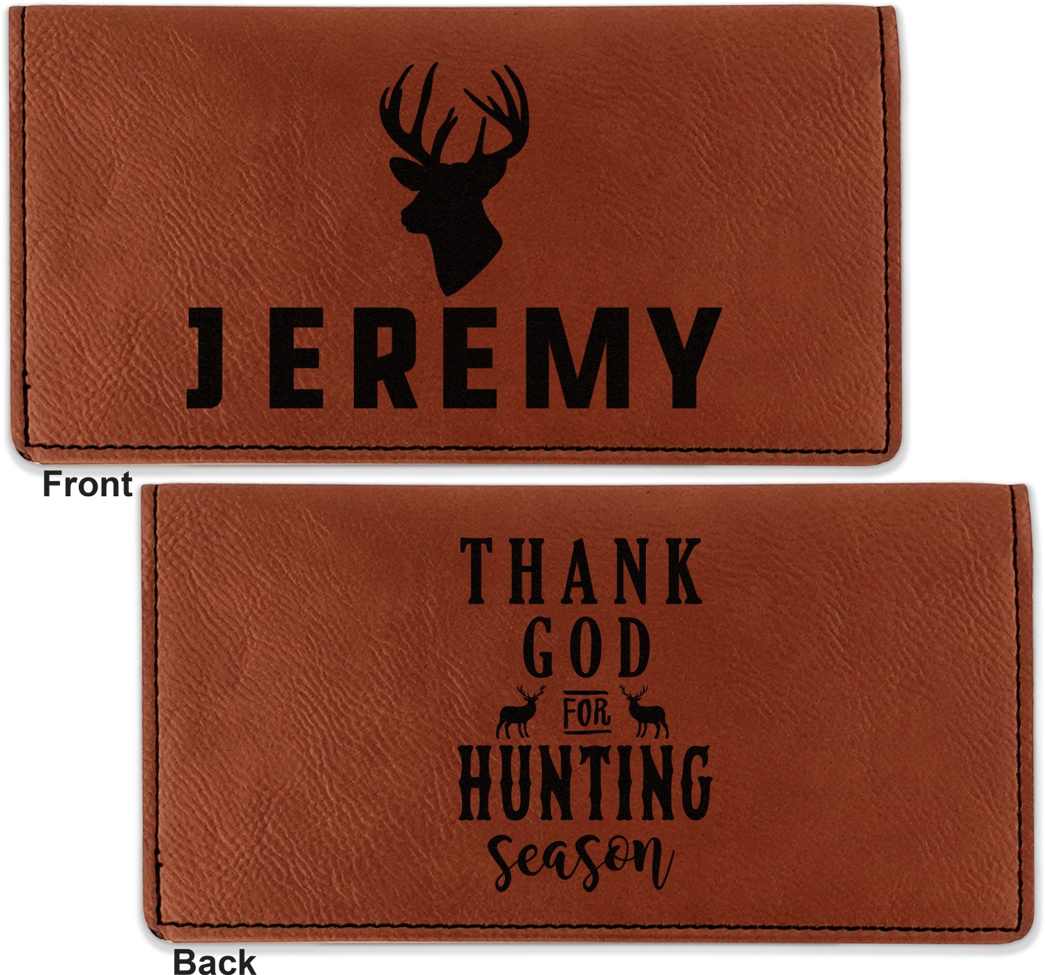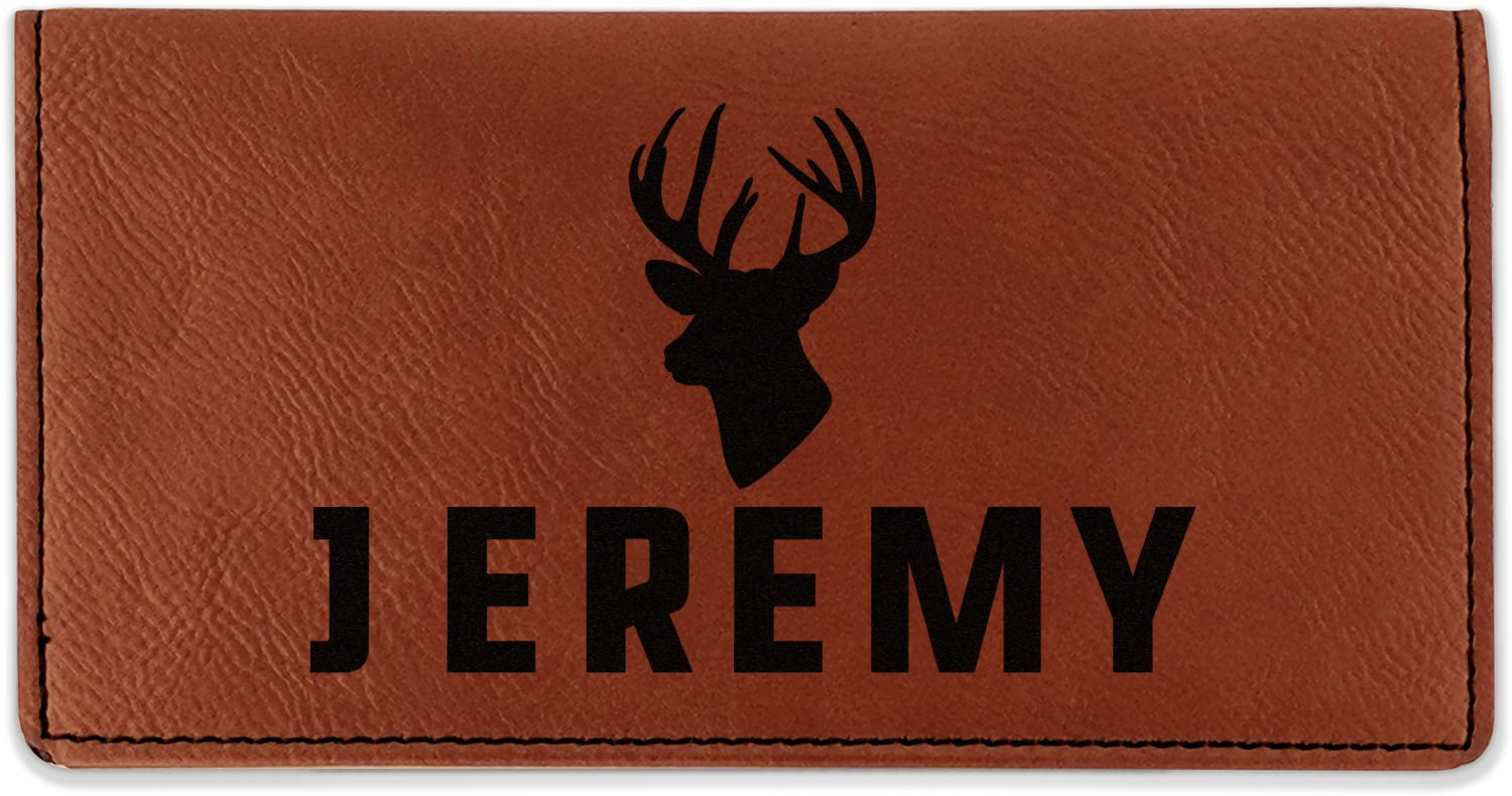 Go into our design center to start personalizing. Your checkbook cover will be laser engraved, making the graphic or text a black color. Choose a fun saying, monogram, or font to go on your checkbook cover. You have the opportunity to do it double or single sided.