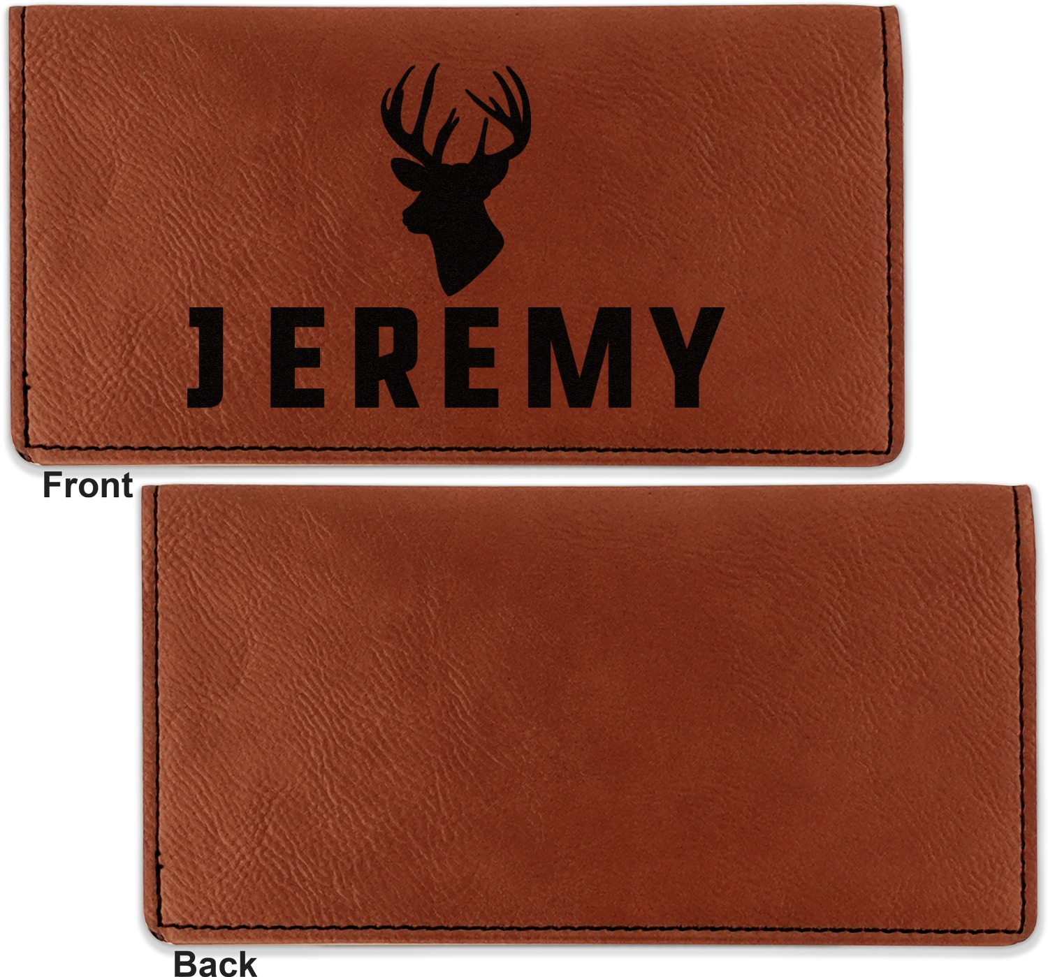Go into our design center to start personalizing. Your checkbook cover will be laser engraved, making the graphic or text a black color. Choose a fun saying, monogram, or font to go on your checkbook cover. You have the opportunity to do it double or single sided.