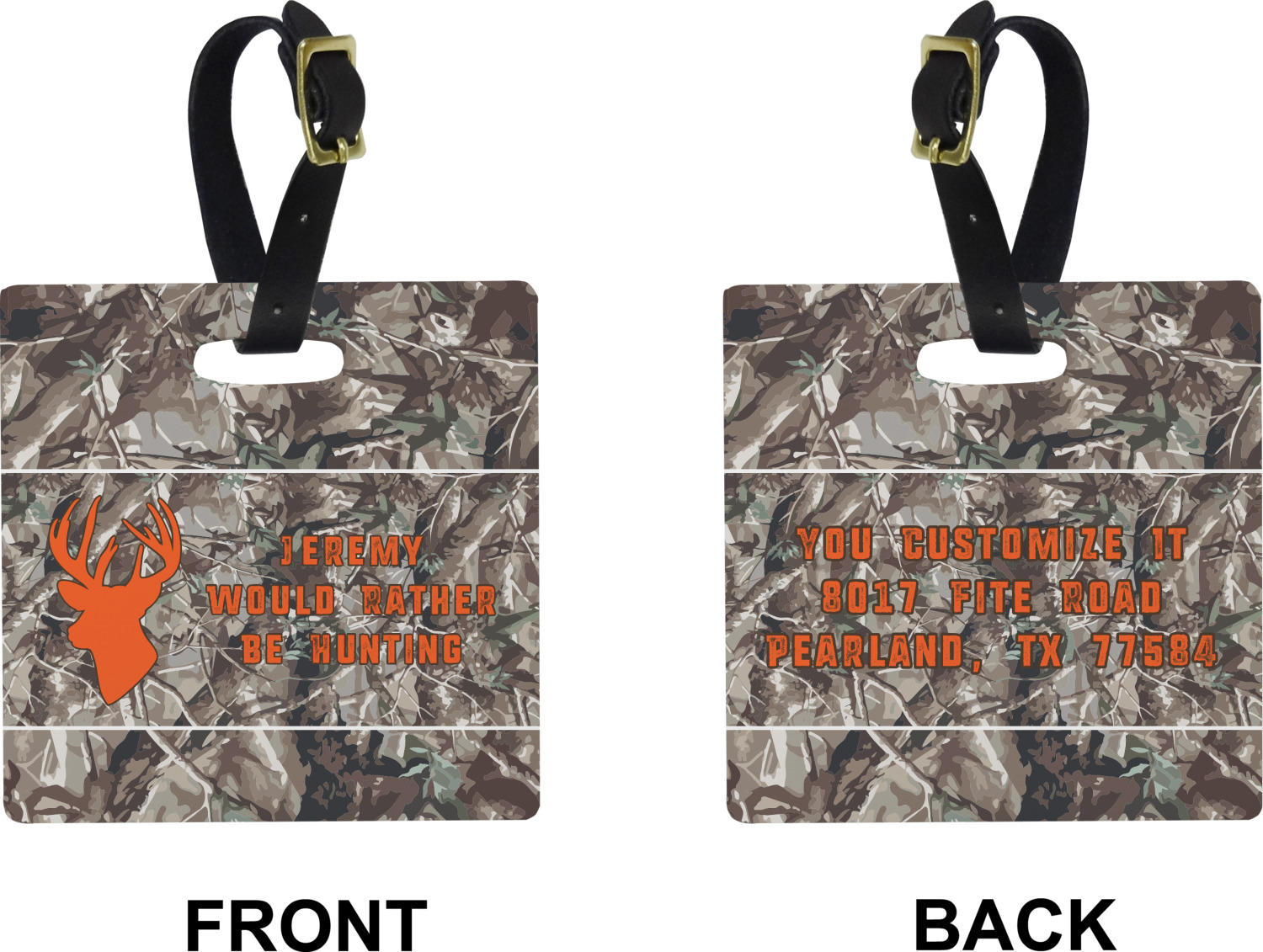 These personalized bag tags are sold in a variety of shapes, so that you may find the product that meets your vision exactly. We sell a round luggage tag, which measures at approximately 4" x 4". Our square luggage tag is about 3.5" x 3.5", while our rectangular version is 2.75" x 4 ".