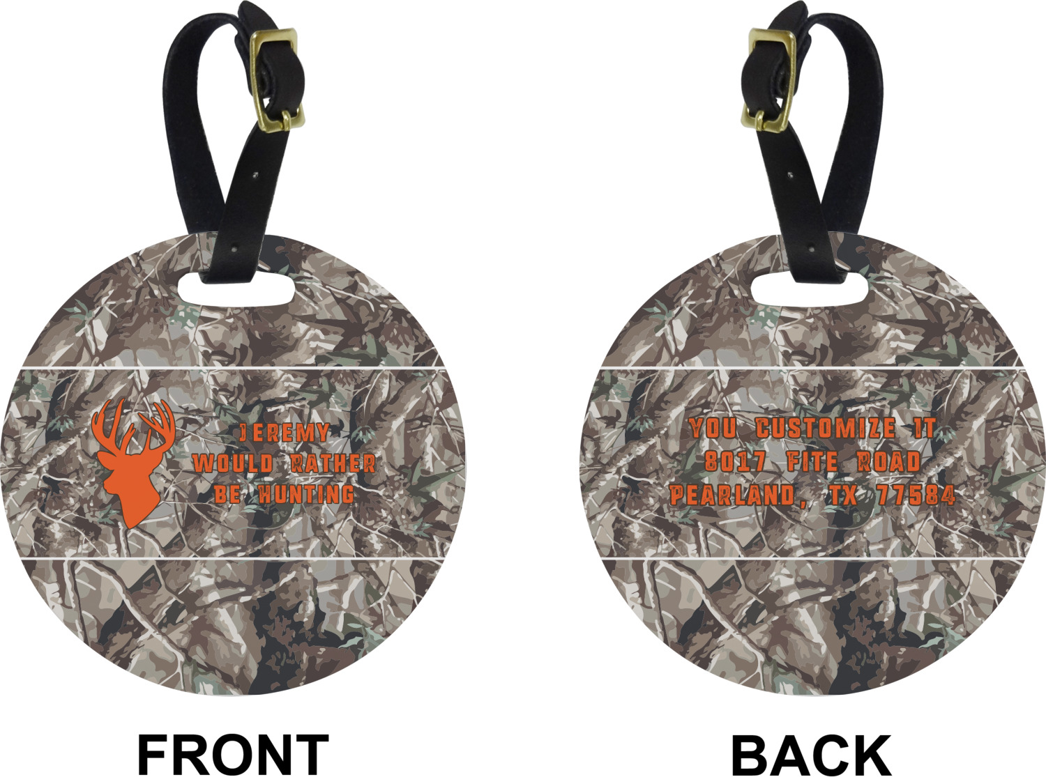 These personalized bag tags are sold in a variety of shapes, so that you may find the product that meets your vision exactly. We sell a round luggage tag, which measures at approximately 4" x 4". Our square luggage tag is about 3.5" x 3.5", while our rectangular version is 2.75" x 4 ".