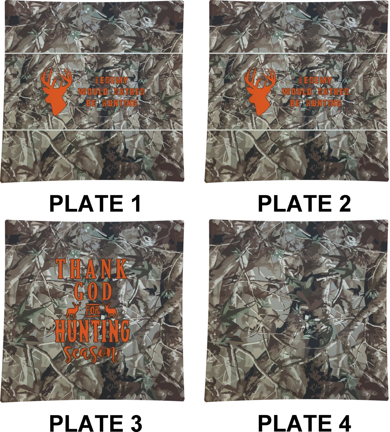 Have fun making this idea your very own unique design. Change the personalization or change everything! There are several different camo backgrounds to choose from in our system to get you started. Have a blast designing and let us know if you need any help.