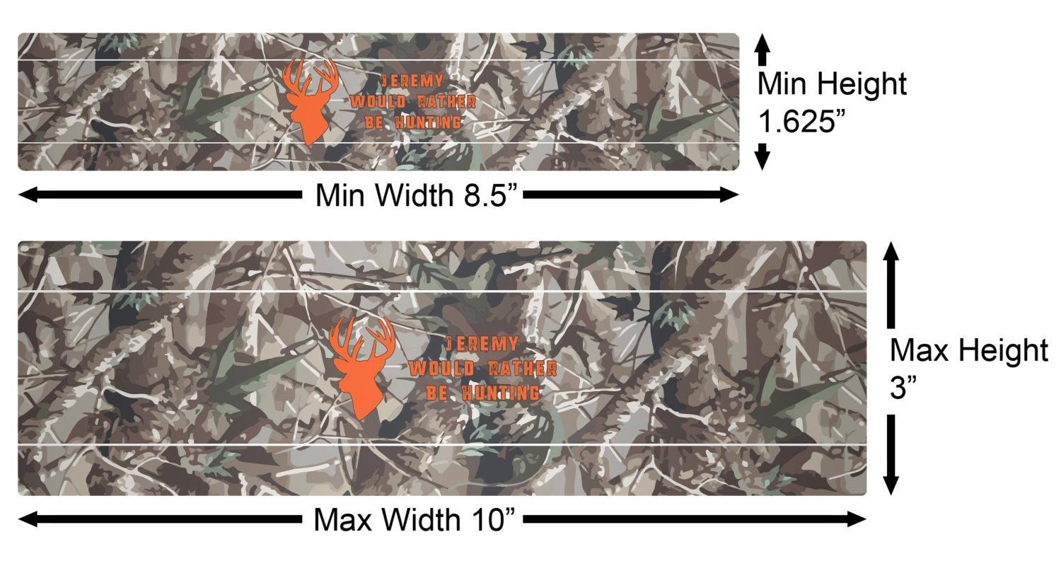 Have fun making this idea your very own unique design. Change the personalization or change everything! There are several different camo backgrounds to choose from in our system to get you started. Have a blast designing and let us know if you need any help.