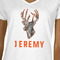 A grassy camo background is used for the perfect setting for this design idea. The background is all different shades of tans and browns. A bright orange is used for the deer head graphic and the grungy text that is used in this design. The bright orange pops perfectly like a safety vest in the woods.