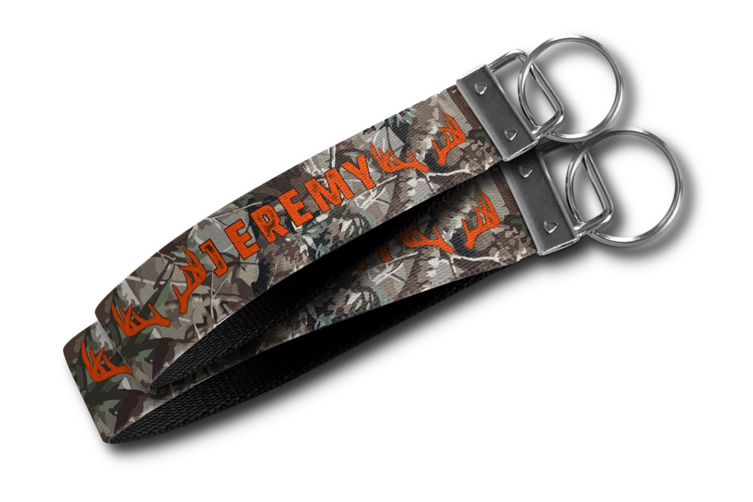 These key fob keychains are made from a polyester weave, right here in the USA. They feature a silver, metal clasp, attached to a round keyring. The piece gives the personalized wristlet a beautiful, finished look. Your customized design is printed on the outside of the keychain strap. We carry these wristlets in two sizes: small, which is 5 inches in width, and large, which is 5.5 inches in width.