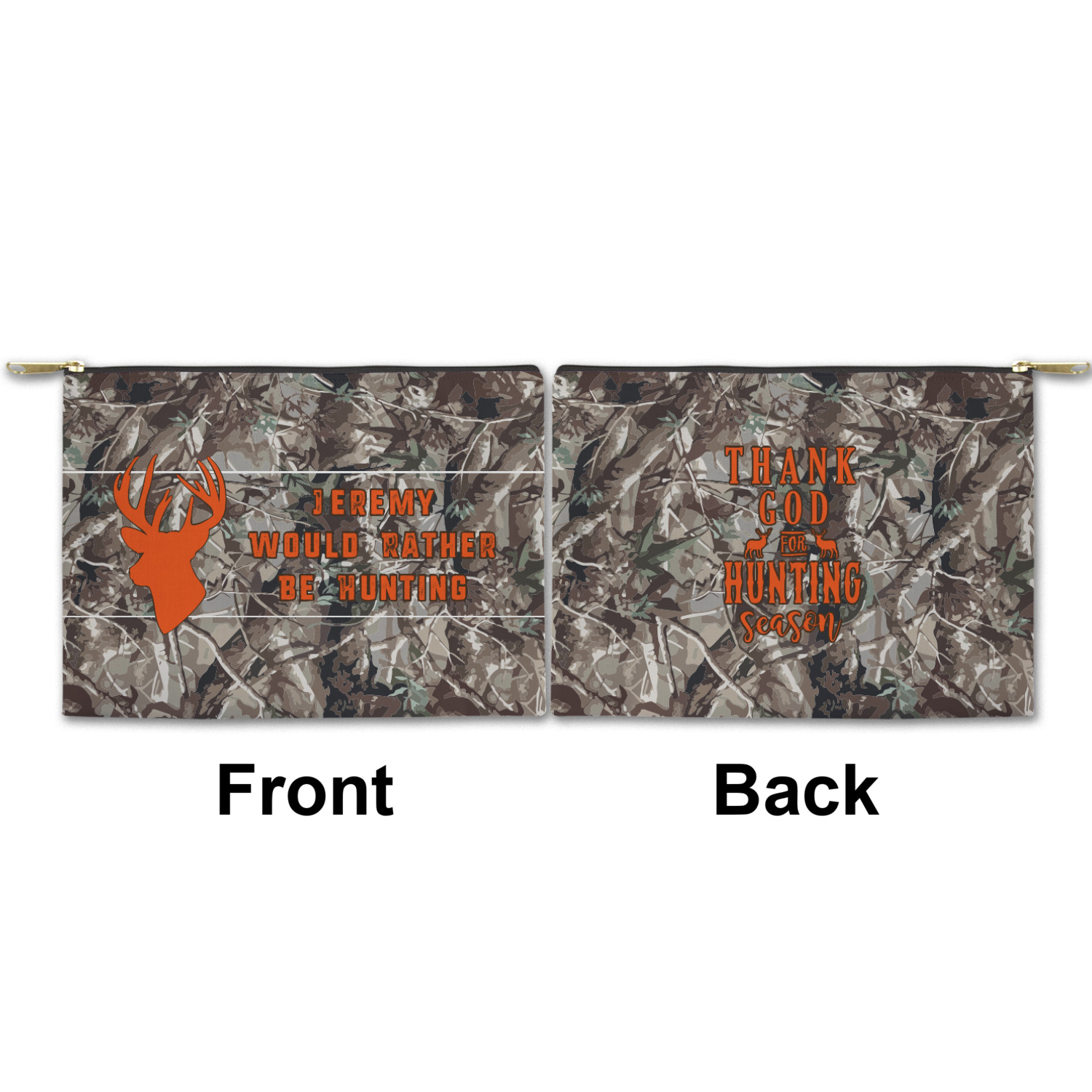 You can design both the front and the back of the pouch - same design, two complementary designs or two totally different designs - the choice is yours! We offer many different personalization styles i.e. name, name & initial, monograms - so the choice to personalize is also yours.