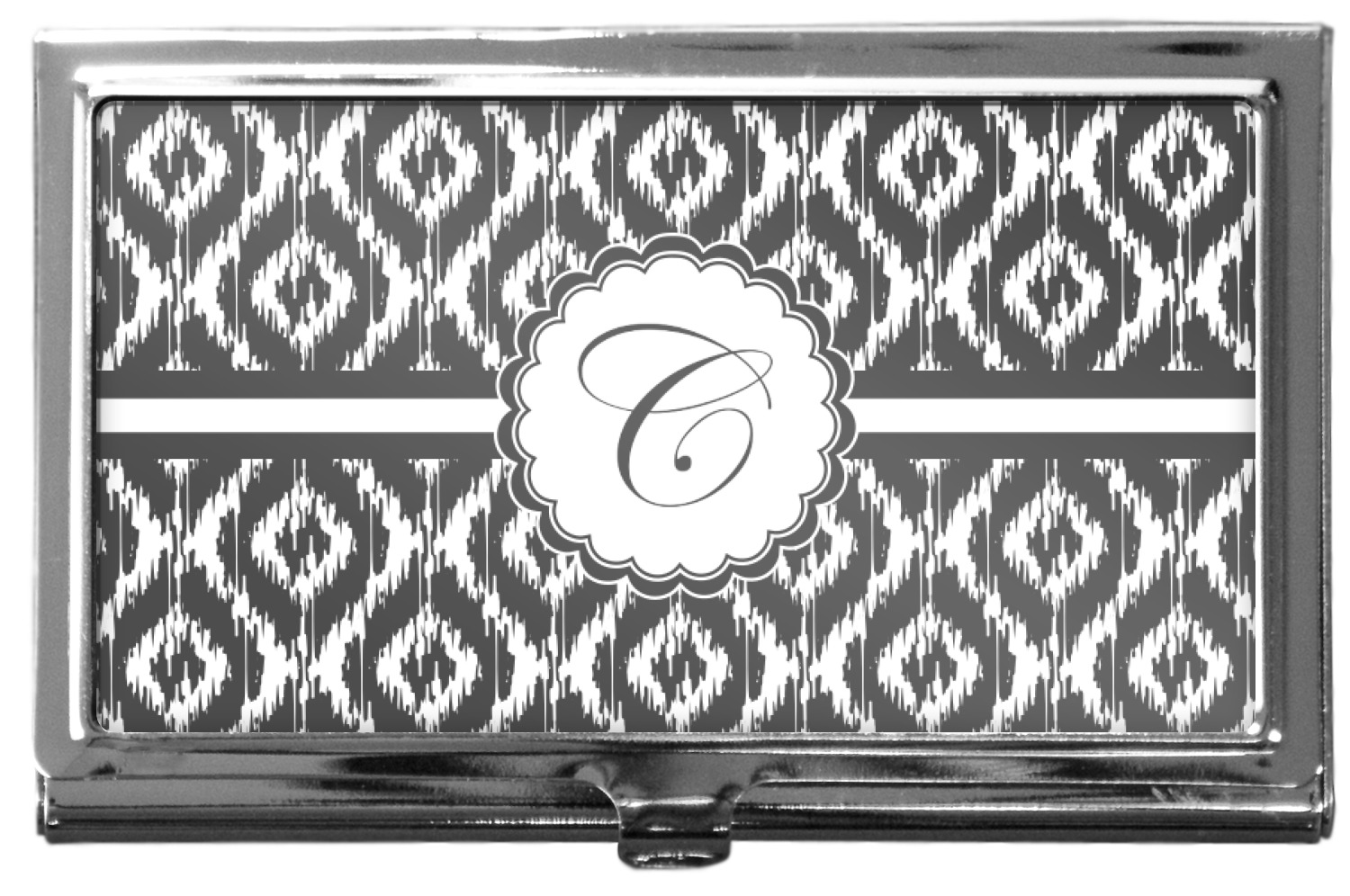 Our personalized business card holders are built from a robust, stainless steel and shaped into a sleek rectangle. At 3.75" x 2.5", and 0.25" thick, this nifty accessory holds up to 12 to 15 business cards, depending on the thickness of the cards themselves. Regardless, the skinny style makes it the perfect fit for your purse or pocket. The lid of your custom business card holder features a protruding tab to open and close your holder with a snap. To protect the mint condition of your cards, the interior of this metal business card holder is lined with a soft, felt fabric. We print your personalized design across the face of the lid.