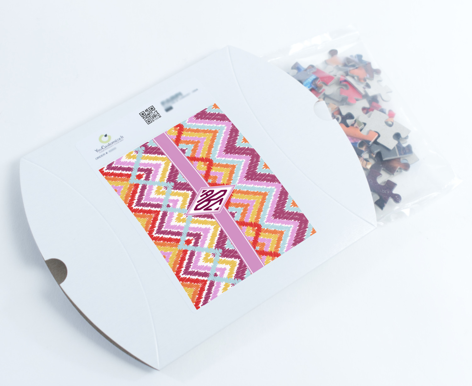 You can also upload your logo or art that you or your kids drew. To create more challenging jigsaw puzzles, you can create a pattern from with your logo or artwork. You can also add other elements such as text or personalization.